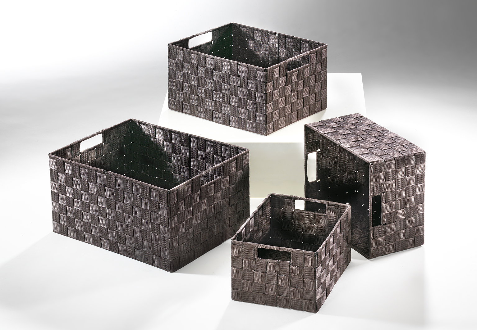 Regalkorb eckig braun aus Nylon auf Metallrahmen geflochten S/4