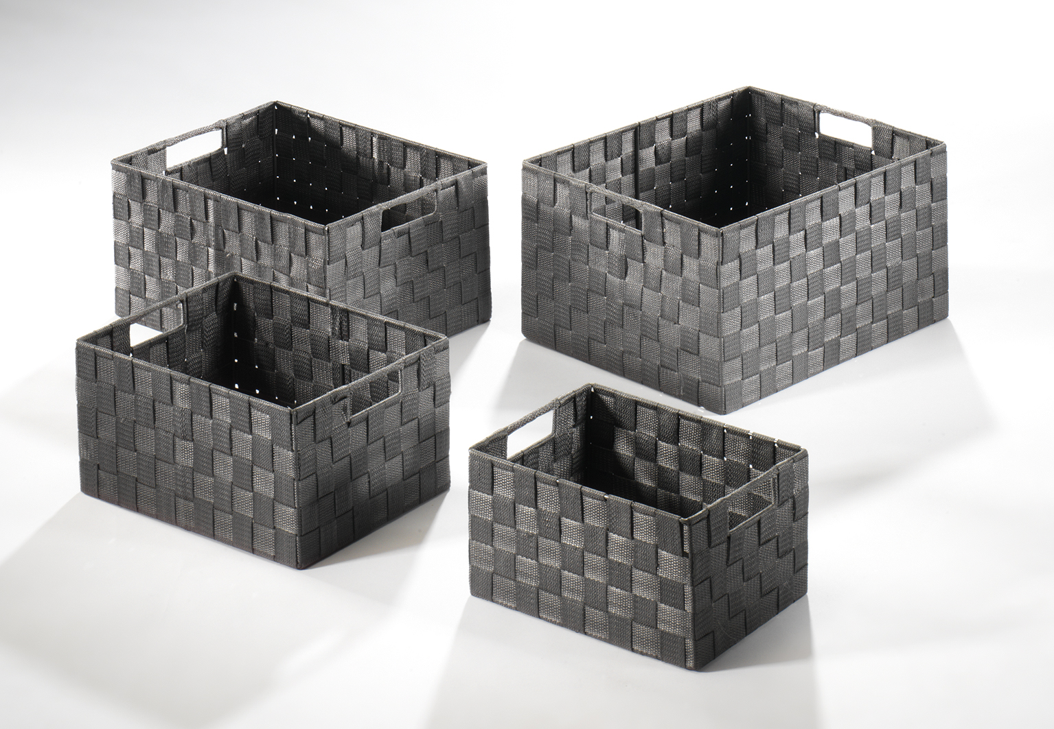 Regalkorb eckig grau Nylon auf Metallrahmen geflochten S/4