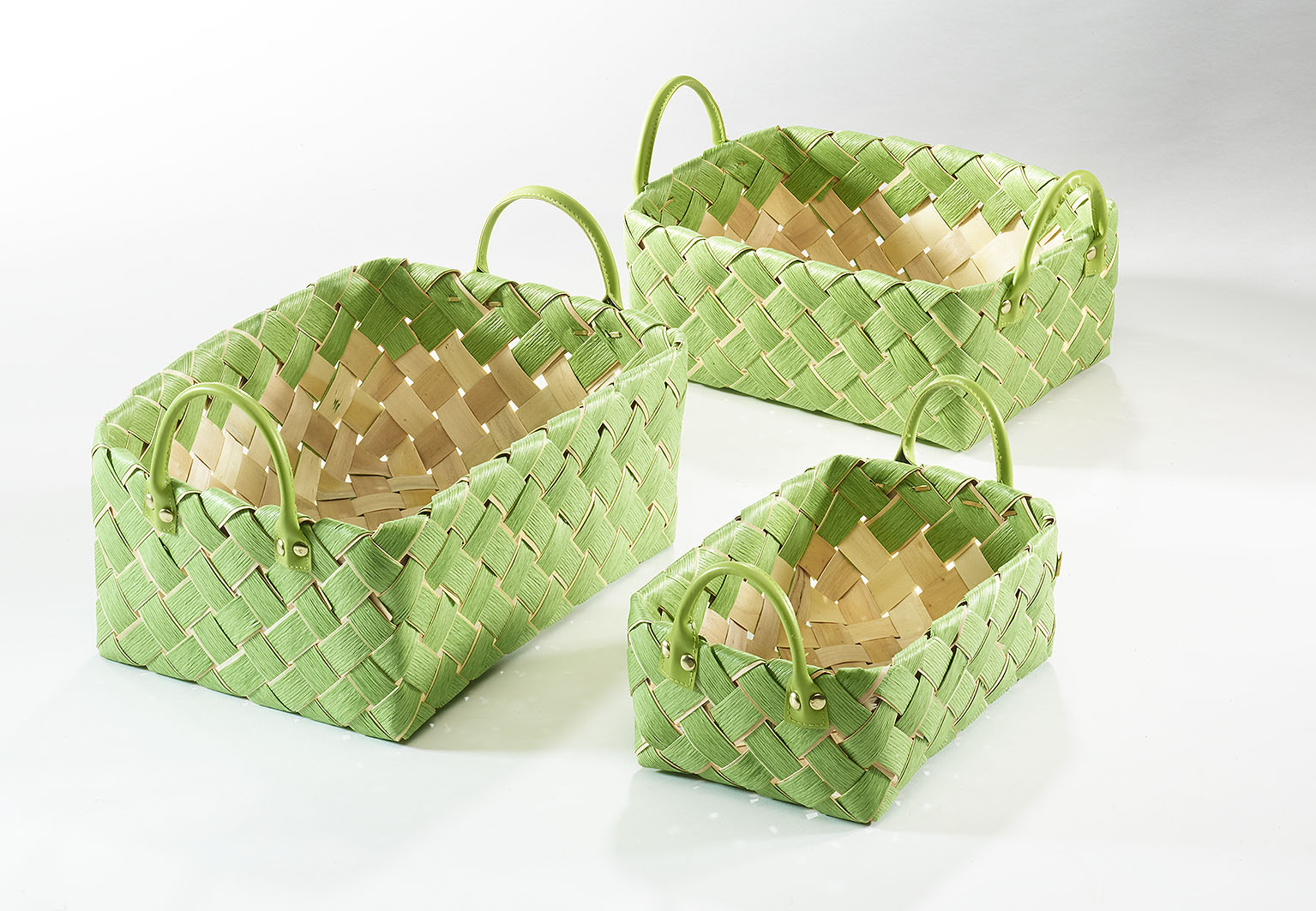 Diese Regalkörbe von Kobolo überzeugen durch eine Mischung aus naturfarbenem Chipwood und gefärbten Bast. Die Regalkörbe eignen sich perfekt um in Ihrem Zuhause Ordnung zu schaffen und werten das Ambiente optisch auf. Sie werden nie wieder auf diese kleinen Ordnungshelfer verzichten wollen. Lieferung erfolgt ohne Deko. Maße Ca.Gr1 28cm x 19cm x 10cm , Gr2 31cm x 24cm x 12cm , Gr3 35cm x 28cm x 14cm , Gr4 28cm x 19cm x 10cm