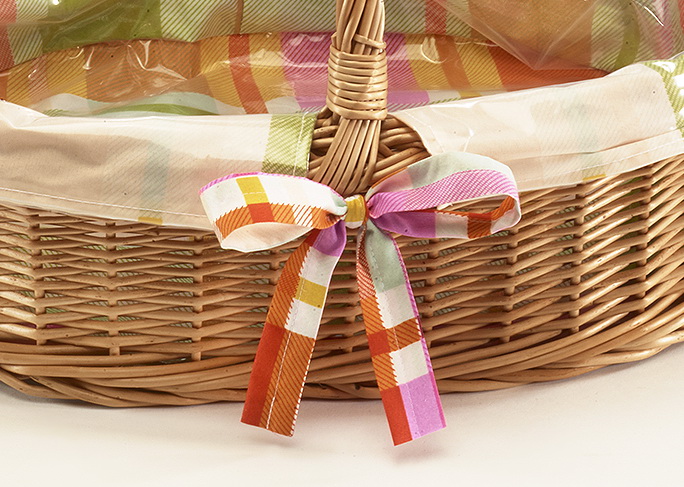 Praktisches Tablett mit extra hohen Kanten von Kobolo. Das Tablett ist aus Weide handgefertigt und ausgeschlagen mit einem bunten Stoff und Folie. Es erleichtert das Tragen duch den mittig angebrachten Bügel. Als Servierkorb oder Tischkorb sehr nützlich im Haus oder beim Grillen im Garten. Länge 47cm x Breite 38cm x Höhe 16cm