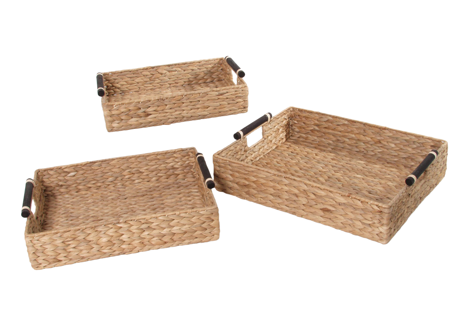 Tablett rechteckig RattangriffeWasserhyazinthe S/3