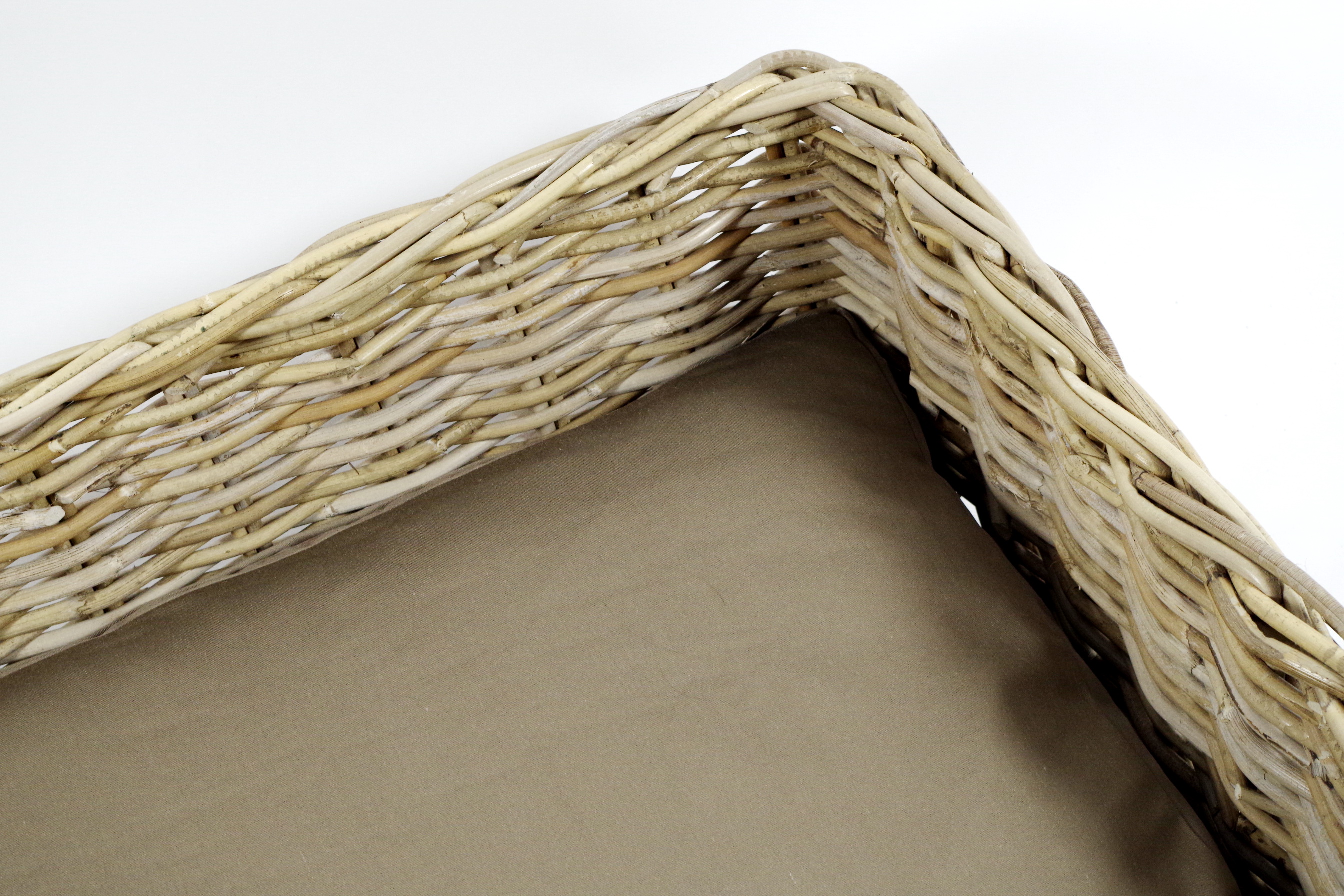 Bequemer und kuscheliger Rückzugsort für ihren geliebten Vierbeiner von Kobolo. Machen Sie ihrem geliebten Vierbeiner ein besonderes Geschenk, in dem er sich viele Jahre wohlfühlen wird. Der Korb wird aus Rattan, einem natürlichen Rohstoff, in traditioneller Handarbeit geflochten und ist deshalb sehr robust und langlebig. Der Kissenbezug kann bis 30 Grad gewaschen werden und das Kissen macht den Korb zu einem kuscheligen Ruheplatz für ihren Hund. Länge 72cm x Breite 53cm x Höhe 20cm