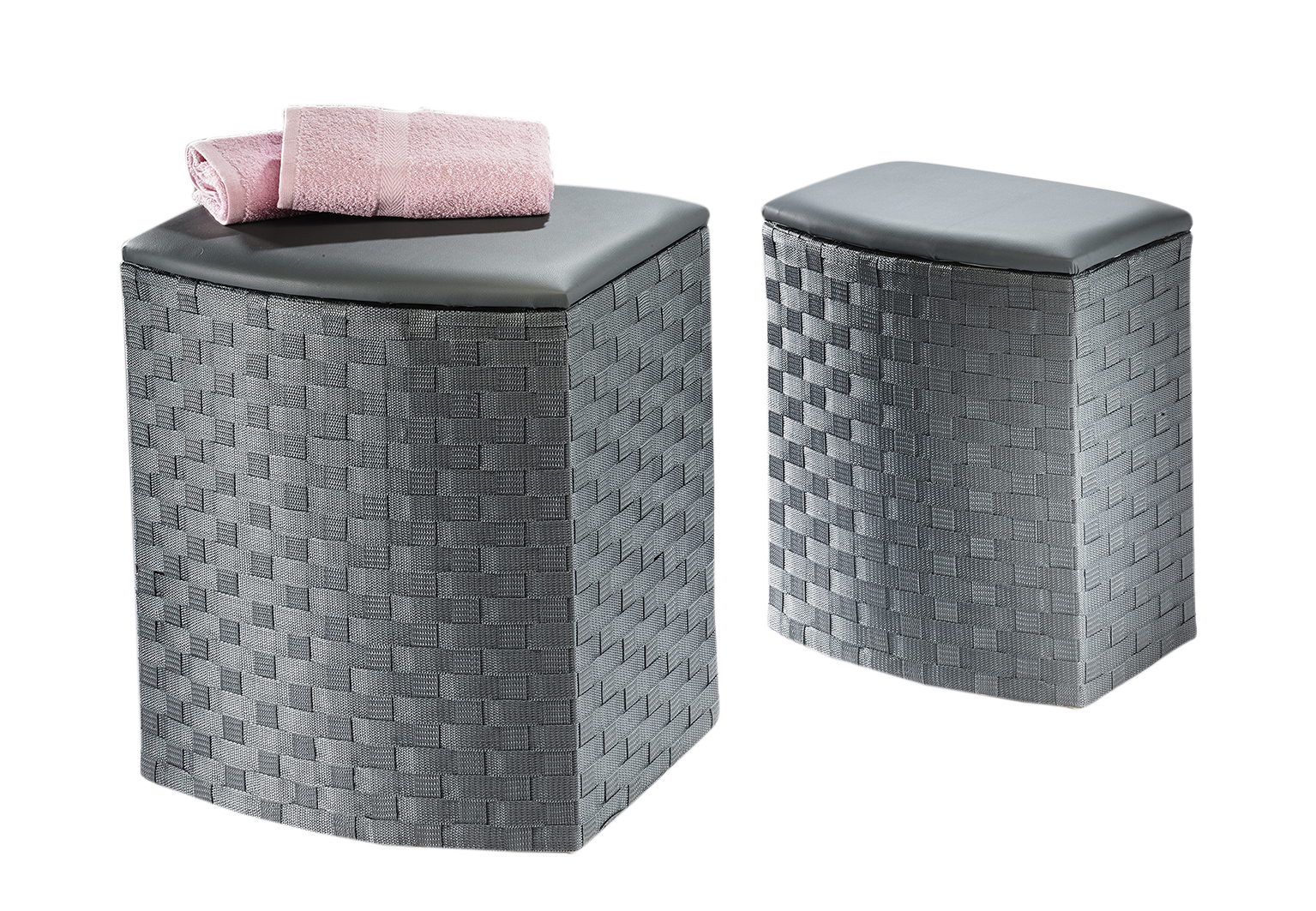 Wäschebehälter Set mit zwei Größen, grau, halbrunde Front, Nylongeflecht