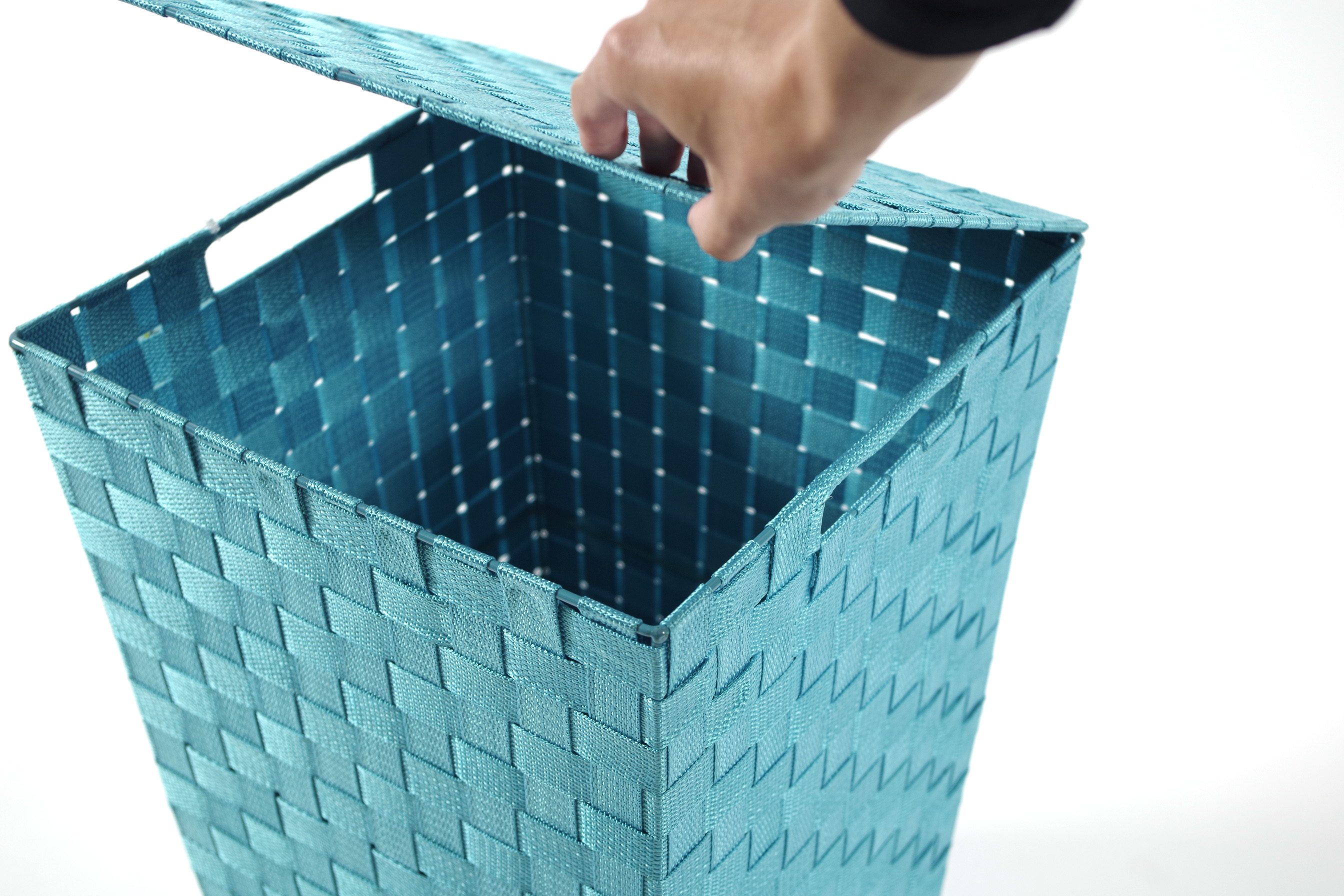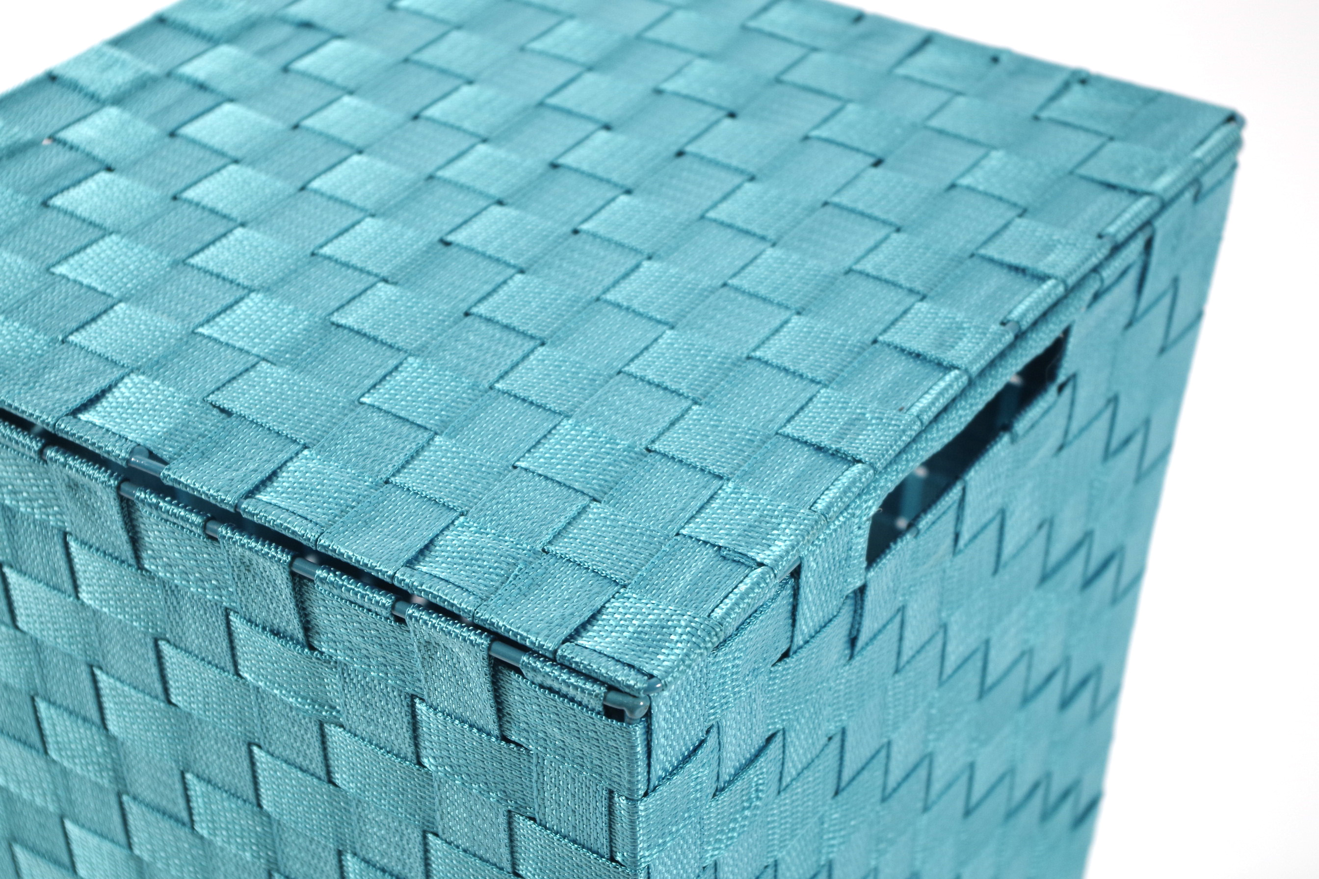 » » » » Wäschebehälter quadratisch hellblau aus Nylon mit Metallrahmen
