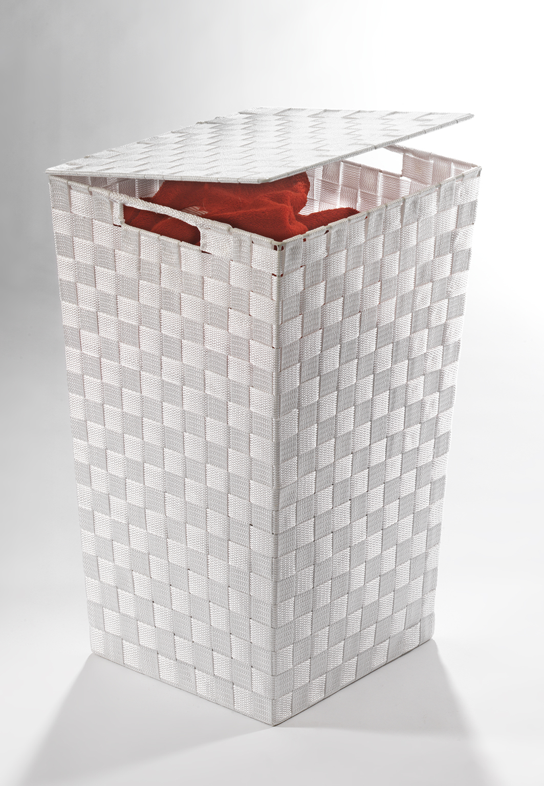 » » » » Wäschebehälter quadratisch weiß aus Nylon mit Metallrahmen