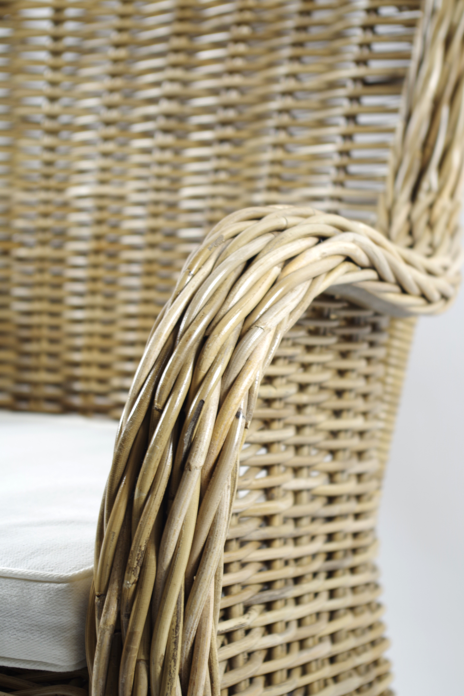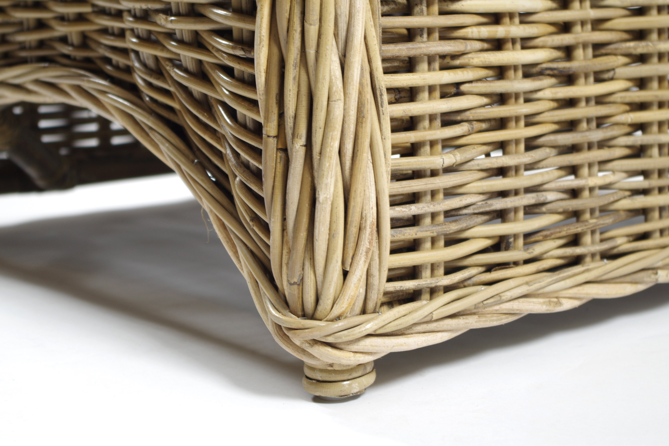 Der Rattansessel BRISTOL von Kobolo ist aus hochwertigem, natürlichem Rattan im Stil und Design klassischer Kolonialmöbel gefertigt. Die Herstellung erfolgt in 100% Handarbeit aus Rattan KUBU GREY, in der durch Langzeitwasserbad herbeigeführten Farbschattierung Grau - Vorteil: für die Farbgebung des Materials muss keinerlei Chemie eingesetzt werden. Mit dem mitgelieferten Kissen wird dieser Sessel eine dekorative Sitzgelegenheit für Innen und den überdachten Außenbereich. Gestell und Geflecht sind aus 100% Rattan natur Kissenbezug aus 100% Baumwolle Länge 62cm x Breite 70cm x Höhe 90cm