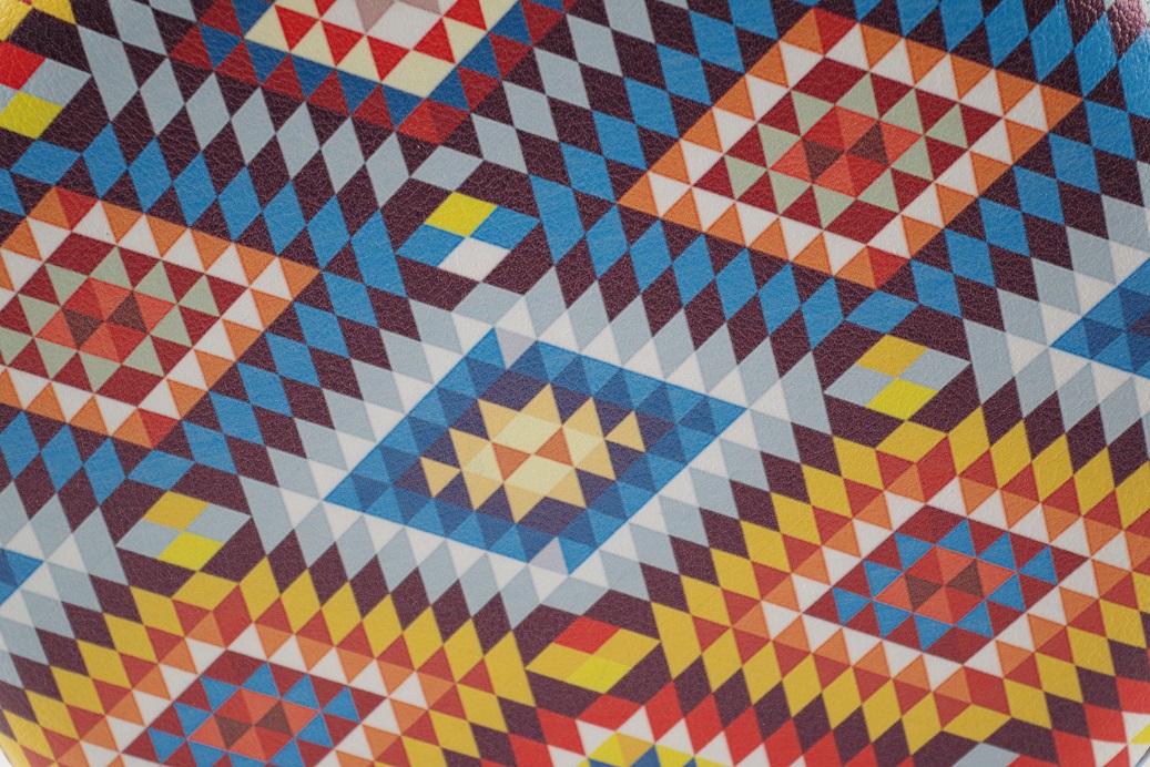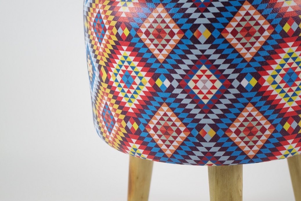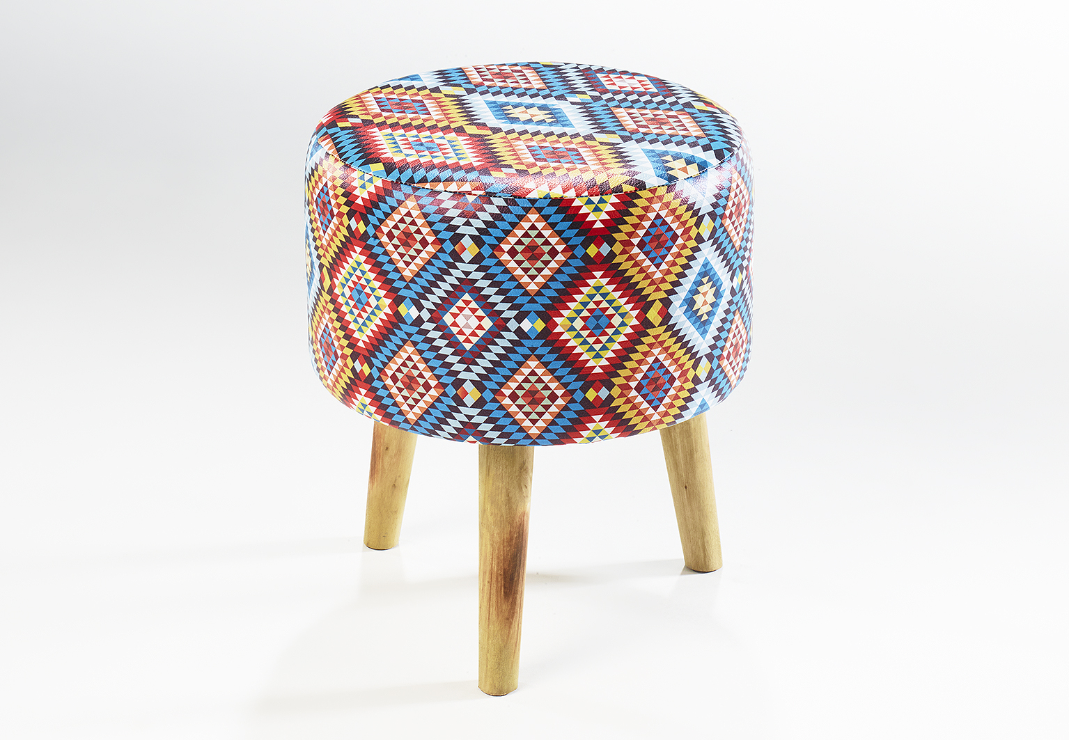 Hocker aus Holz rund mit Kunstlederüberzug bunt