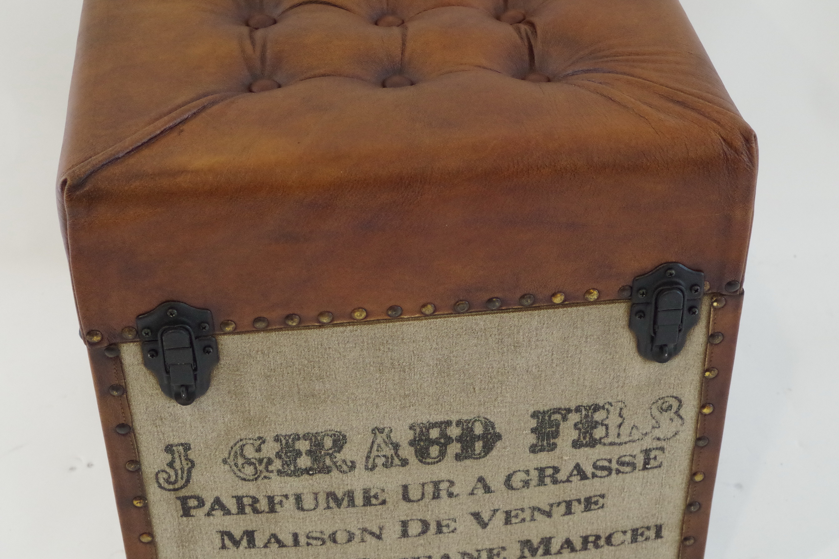 Raffinierter Sitzwürfel im Vintage-Design aus Holz und Echtleder von Kobolo. Dieser Würfel ist vielseitig einsetzbar, zB als Sitzgelegenheit, Stauraum und Deko in ihrem Zuhause. Auch als Fußhocker findet der praktische Würfel Verwendung. Das einzigartige Design wird in ihrem Zuhause zu einem Hingucker. Länge 46cm x Breite 46cm x Höhe 52cm