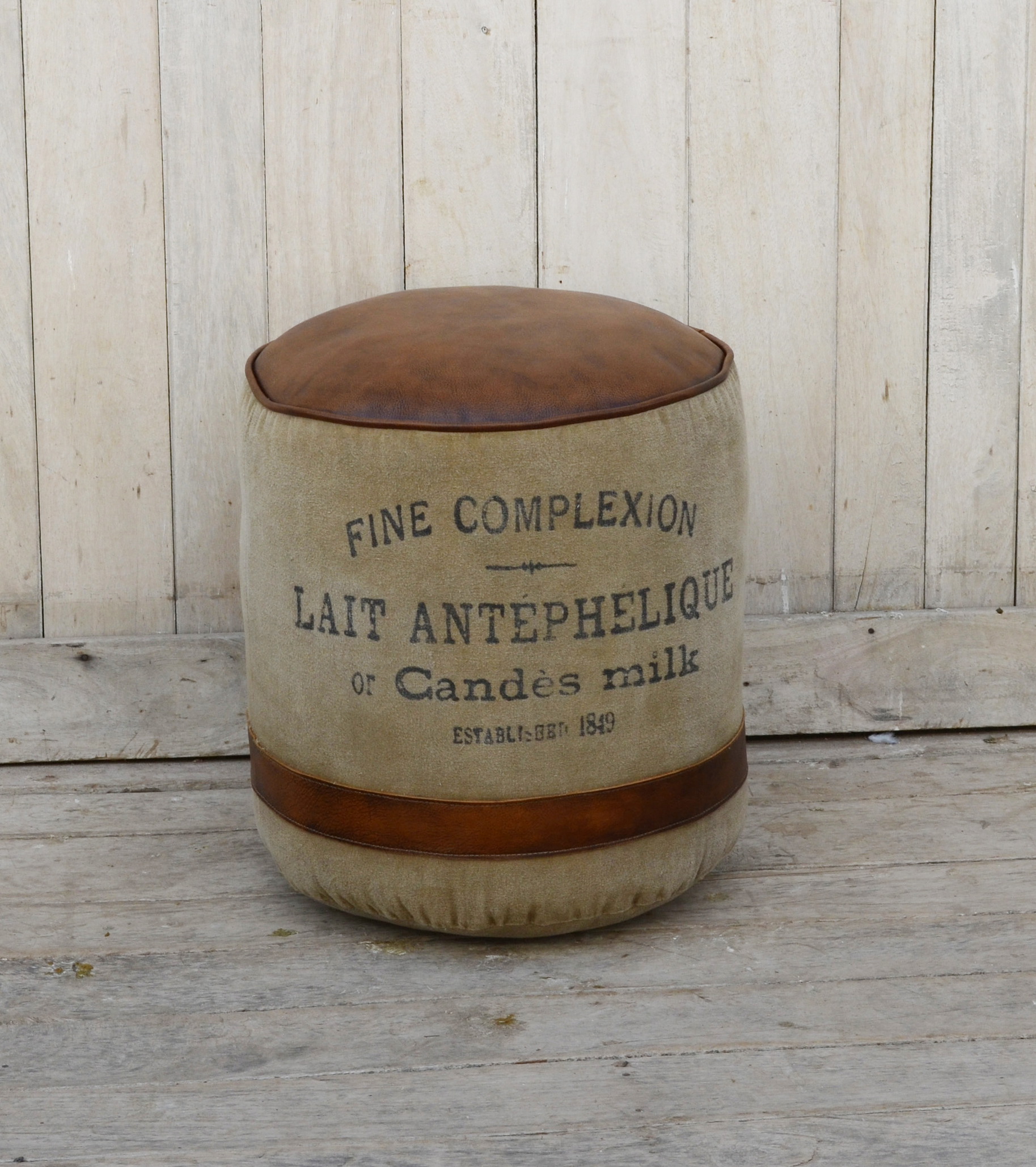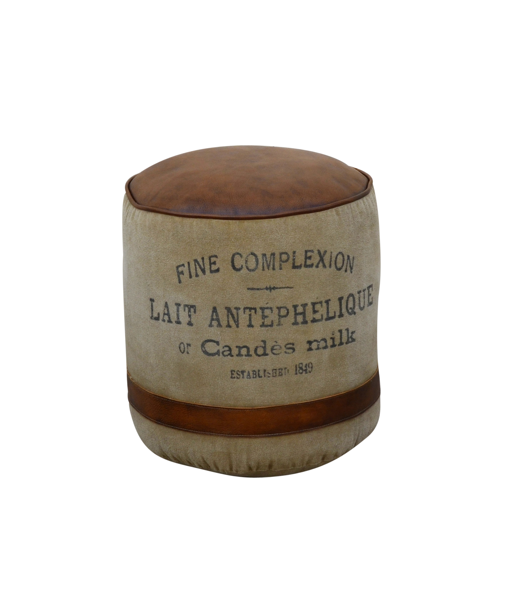 Neuartiger Sitzpouf aus Canvas-Stoff und Leder von Kobolo. Der runde Pouf kann vielseitig eingesetzt werden, zB als Sitzgelegenheit oder Fußhocker. Das angesagte Vintage-Design verleiht ihrer Wohnung ein modernes Ambiente. Der Sitzpouf füg sich perfekt in viele Wohnstile ein und wird ihnen viel Freude bereiten - Material 90 Prozent Baumwolle und 10 Prozent Leder. Länge 42cm x Breite 42cm x Höhe 50cm