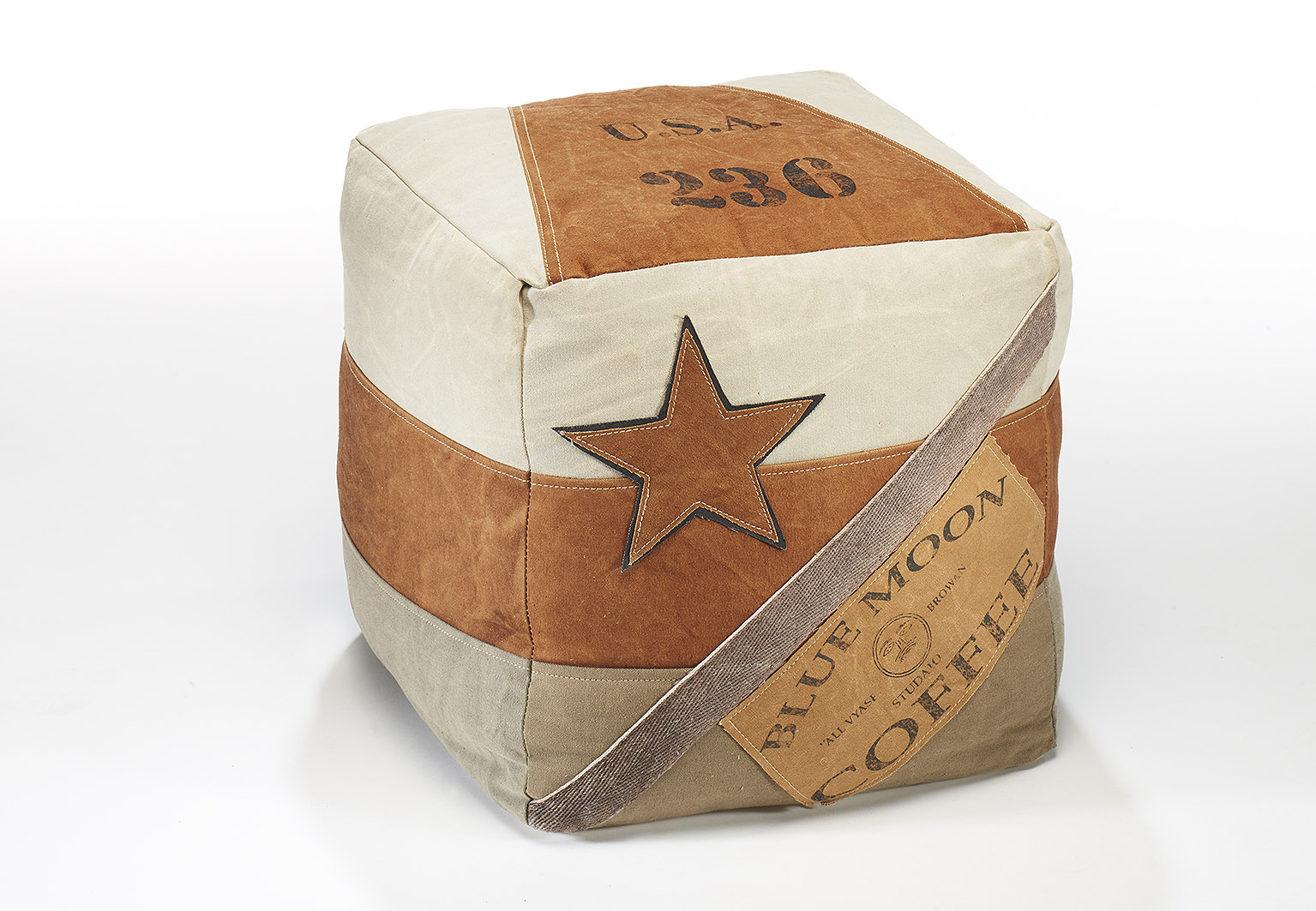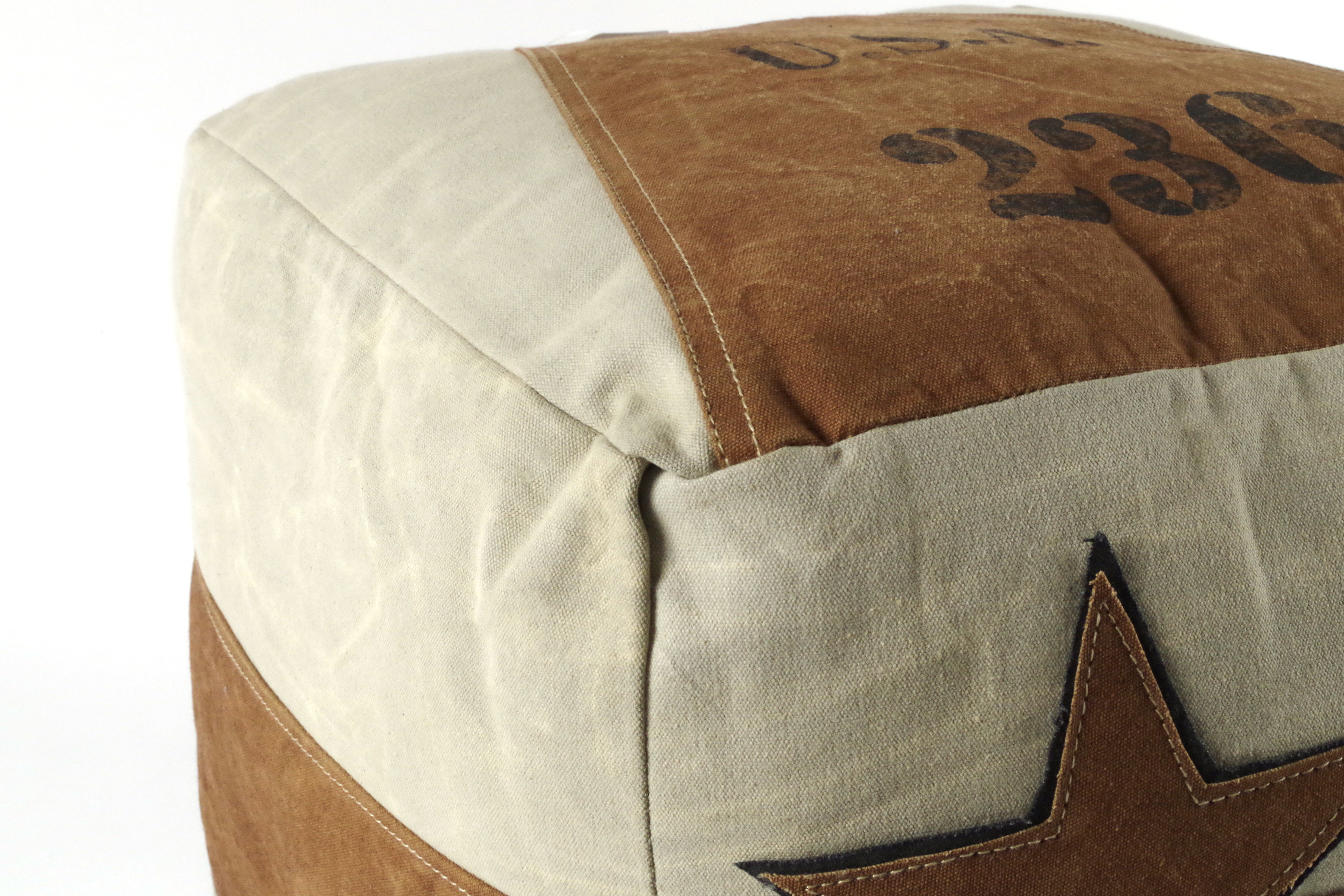 Origineller Sitzpouf aus Canvas-Stoff mit Applikationen von kobolo. Der Sitzwürfel kann vielseitig eingesetzt werden, zB als Sitzgelegenheit oder Fußhocker. Das angesagte Vintage-Design verleiht ihrer Wohnung ein modernes Ambiente. Diese Sitzgelegenheit füg sich perfekt in viele Wohnstile ein und wird ihnen viel Freude bereiten. Länge 41cm x Breite 41cm x Höhe 41cm