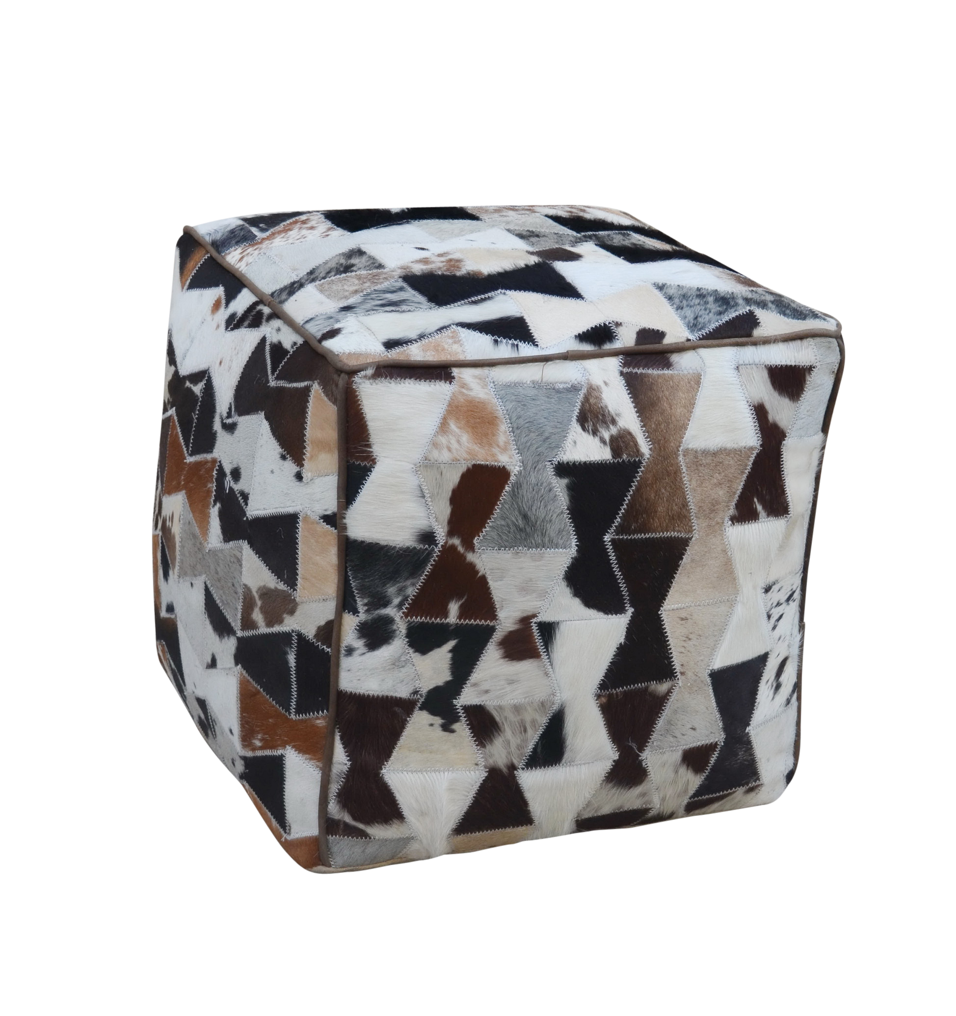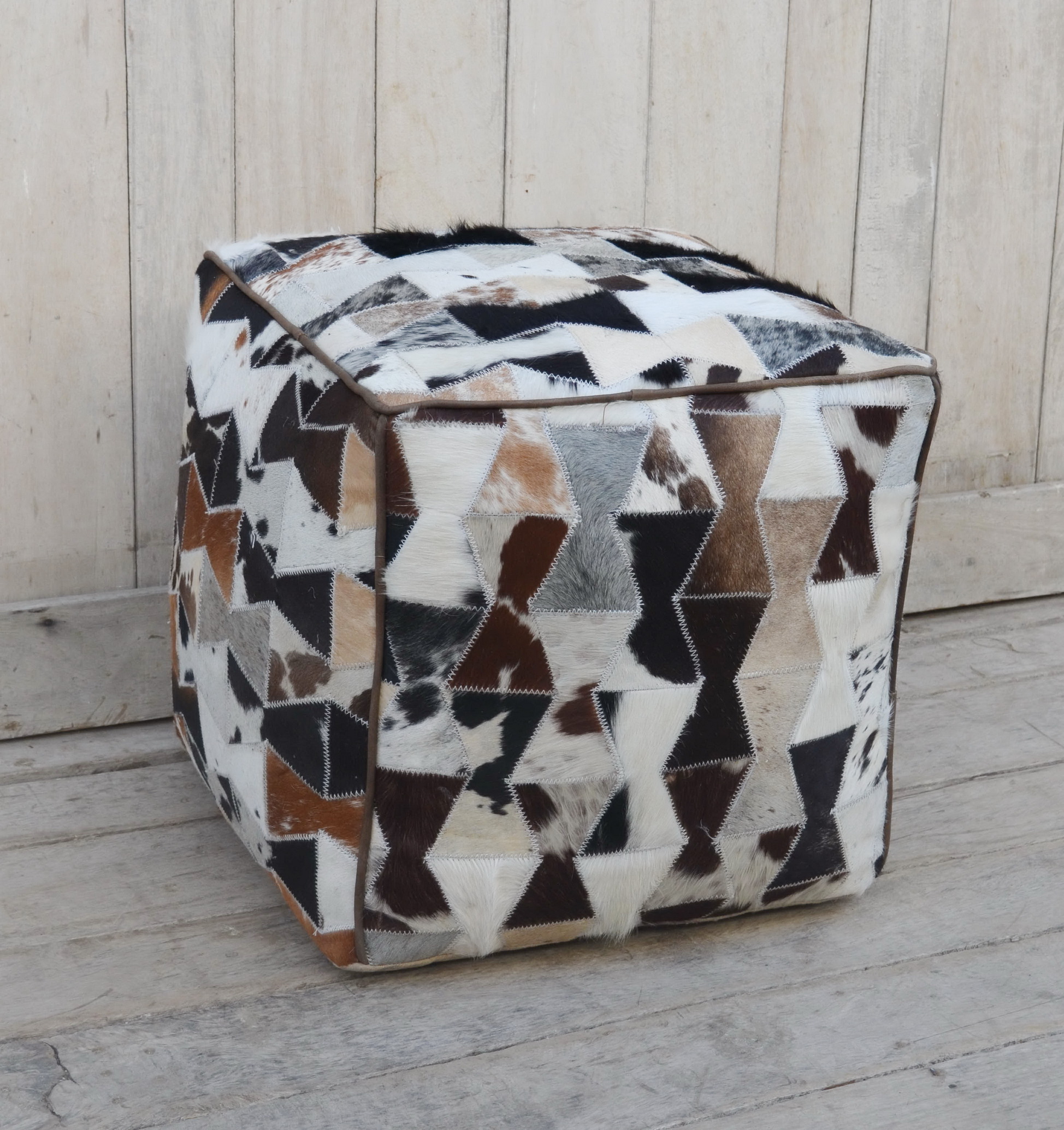 Raffinierter Sitzhocker aus Patchwork Kuhfellflicken von Kobolo. Egal ob sie den Würfel als Sitz- oder Fußhocker benutzen, er sieht immer absolut stylisch aus und sorgt für ein rustikal modernes Ambiente. Die Kuhfell-Patchworkflicken verleihen jedem der Würfel sein einzigartiges Aussehen. Kein Würfel gleicht dem anderen und sie bekommen somit ein absolutes Unikat. Länge 44cm x Breite 44cm x Höhe 44cm
