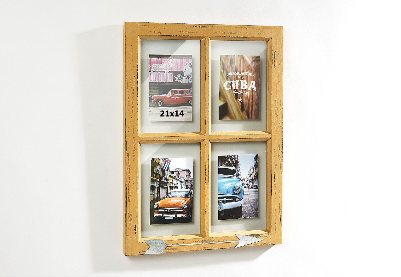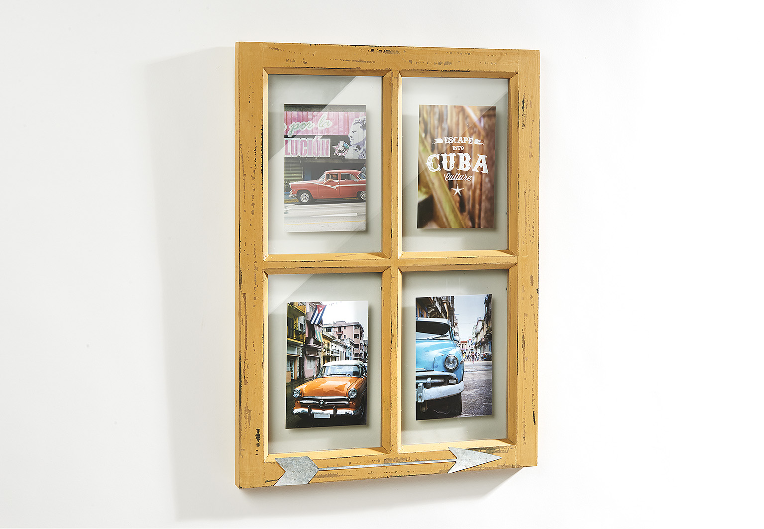 Neuartiger Bilderhalter in Form eines Fensters aus Holz und Glas von Kobolo. Jeder Glasabschnitt ist 20x14 cm groß, der perfekte Rahmen für Ihre Lieblingsfotos. Die Fotos werden zwischen 2 Glasscheiben platziert und somit in Szene gesetzt. Das Deko-Fenster verfügt über ein Aufhängöse aus Metall. Länge 37cm x Breite 2cm x Höhe 51cm