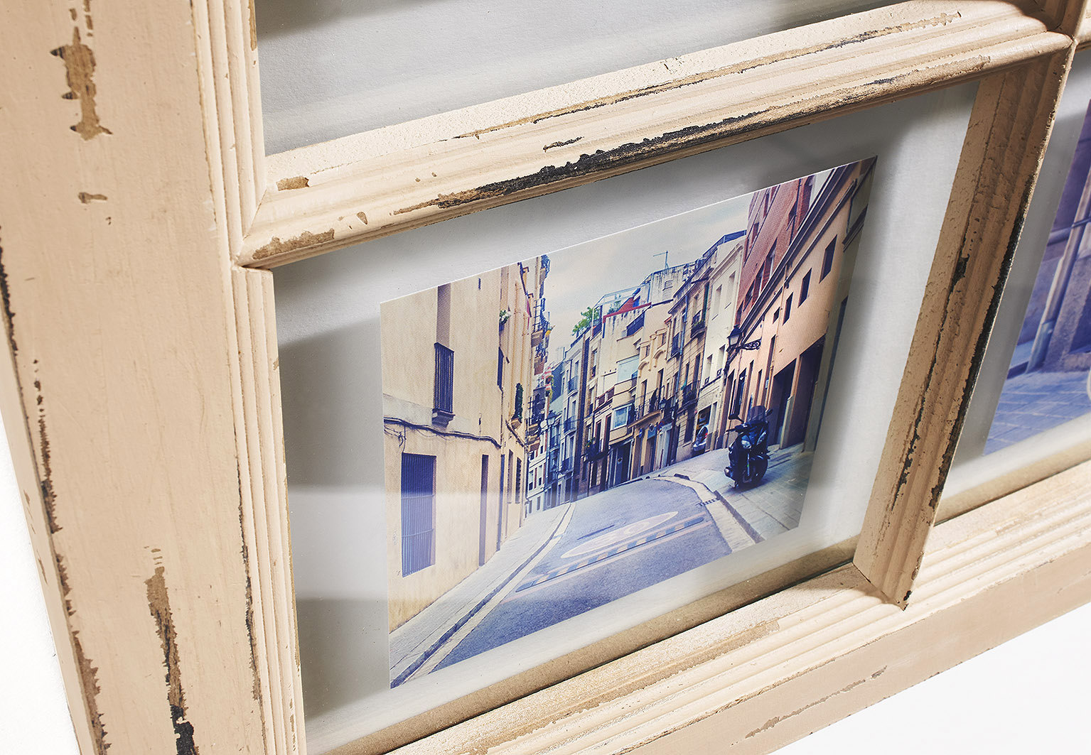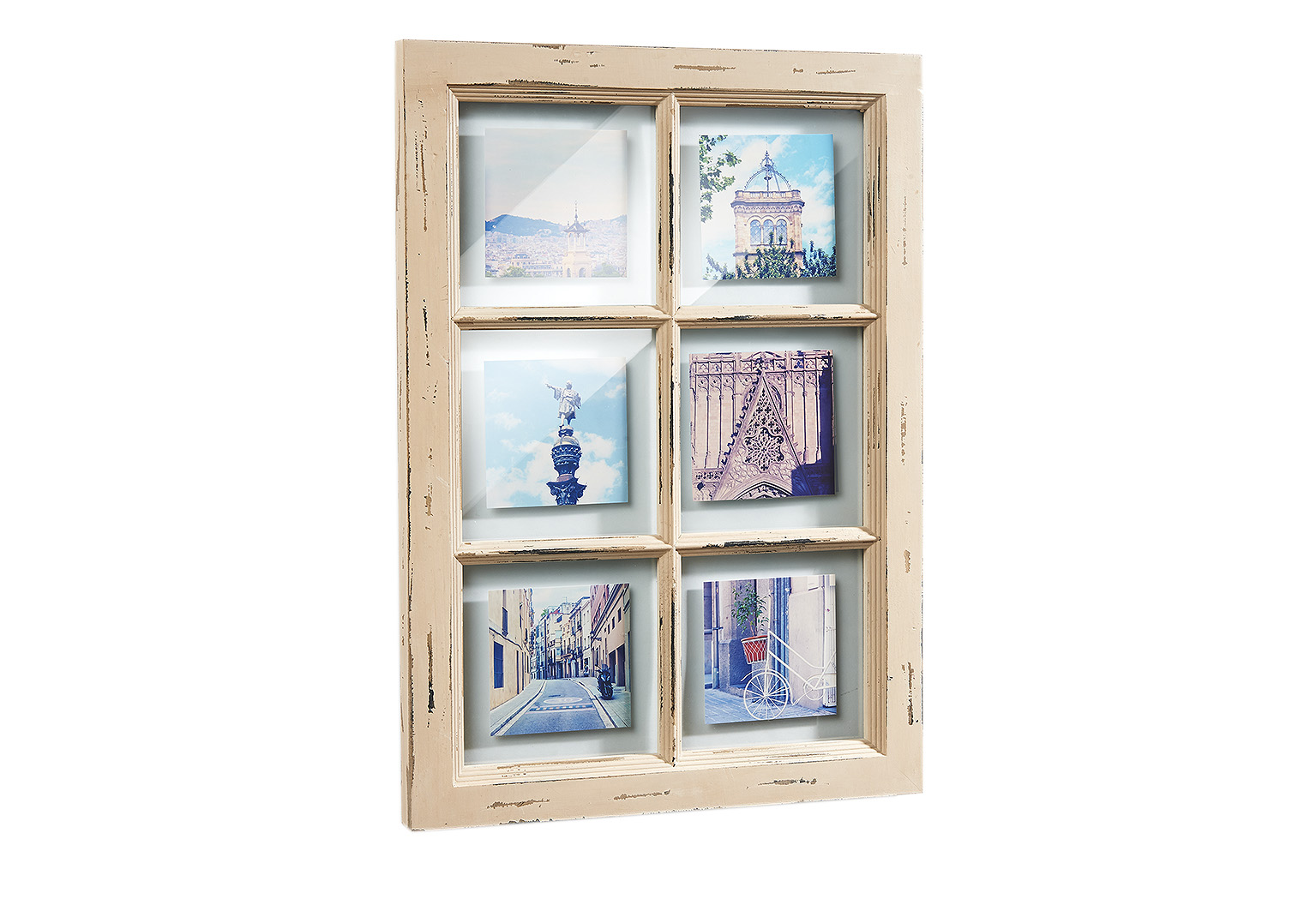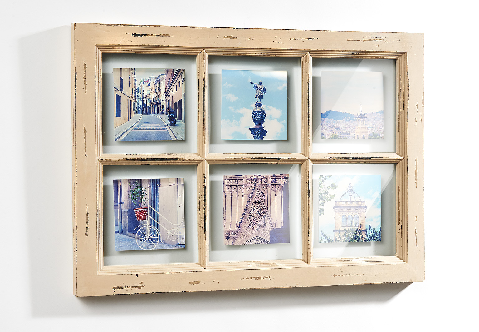 Neuartiger Bilderhalter in Form eines Fensters aus Holz und Glas von Kobolo. Jeder Glasabschnitt ist 13x13 cm groß, der perfekte Rahmen für Ihre Lieblingsfotos. Die Fotos werden zwischen 2 Glasscheiben platziert und somit in Szene gesetzt. Das Deko-Fenster verfügt über ein Aufhängöse aus Metall. Länge 37cm x Breite 3cm x Höhe 52cm