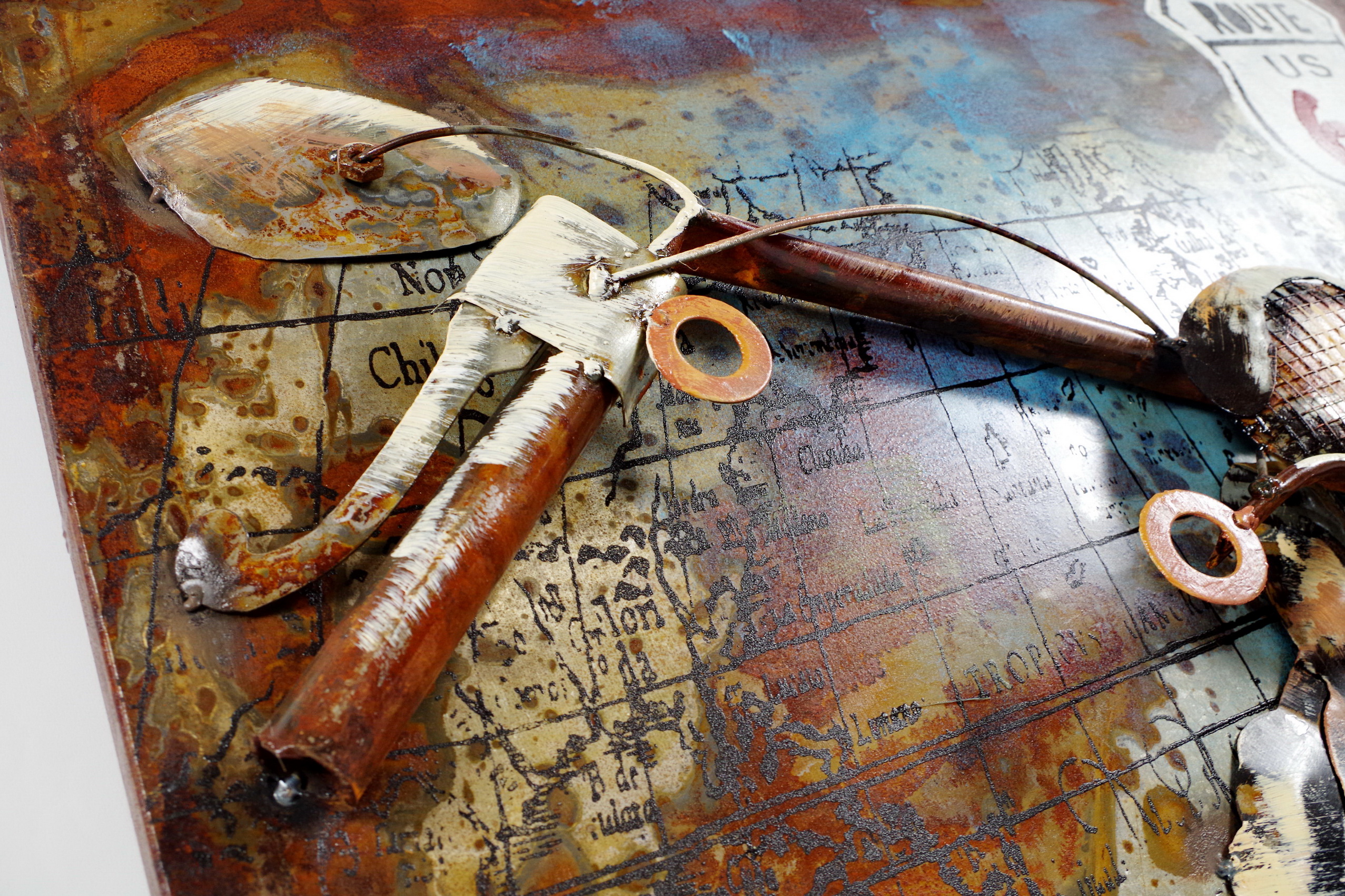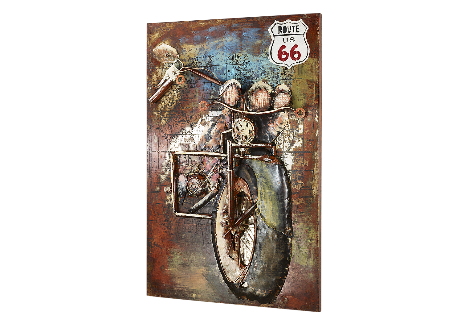 Startseite » Neuheiten » Metallbild 3D rechteckig Route 66 Motorrad als 3D Relief
