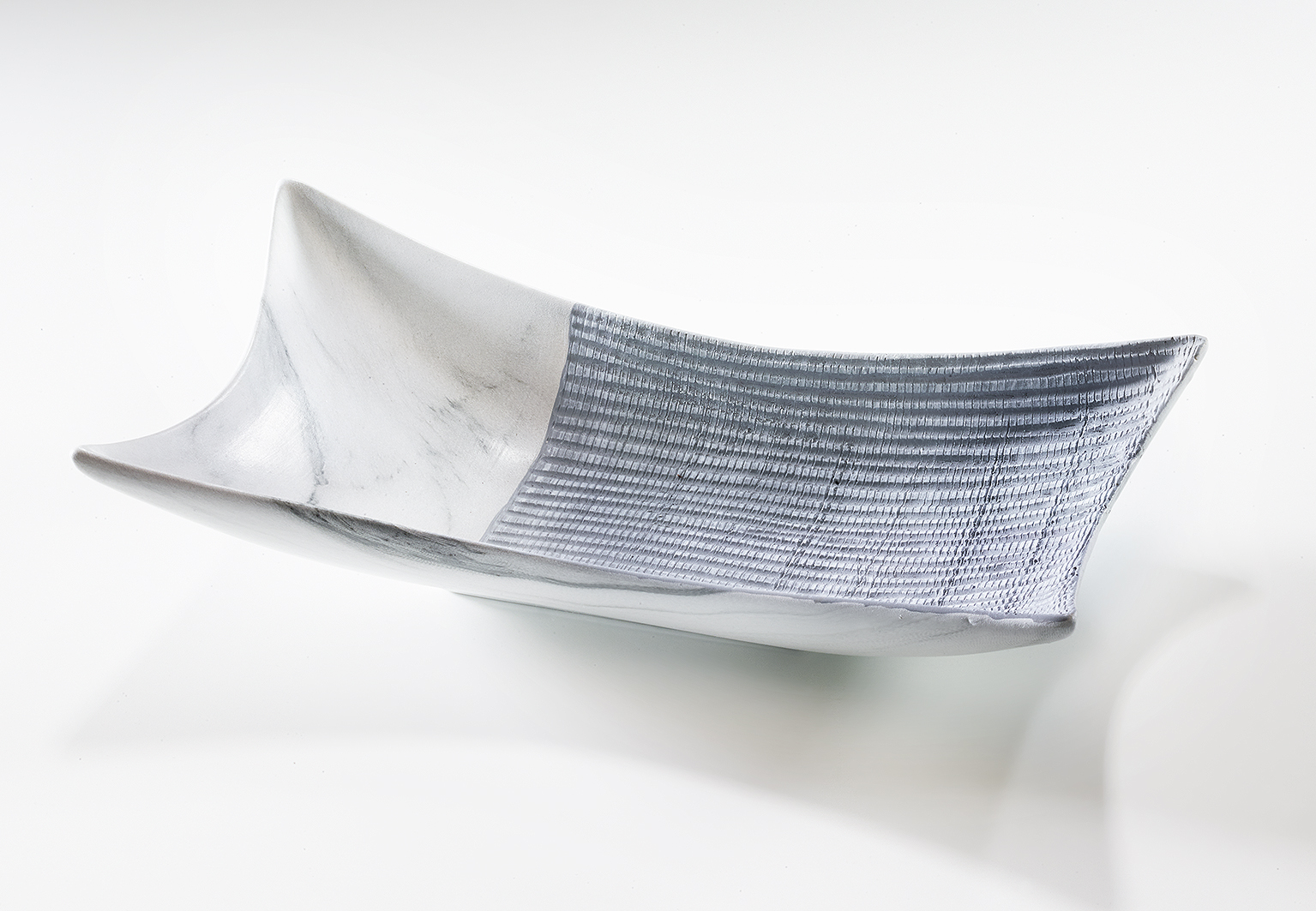 Deko-Schale mit spitz zulaufenden Ecken aus Keramik grau-weiß