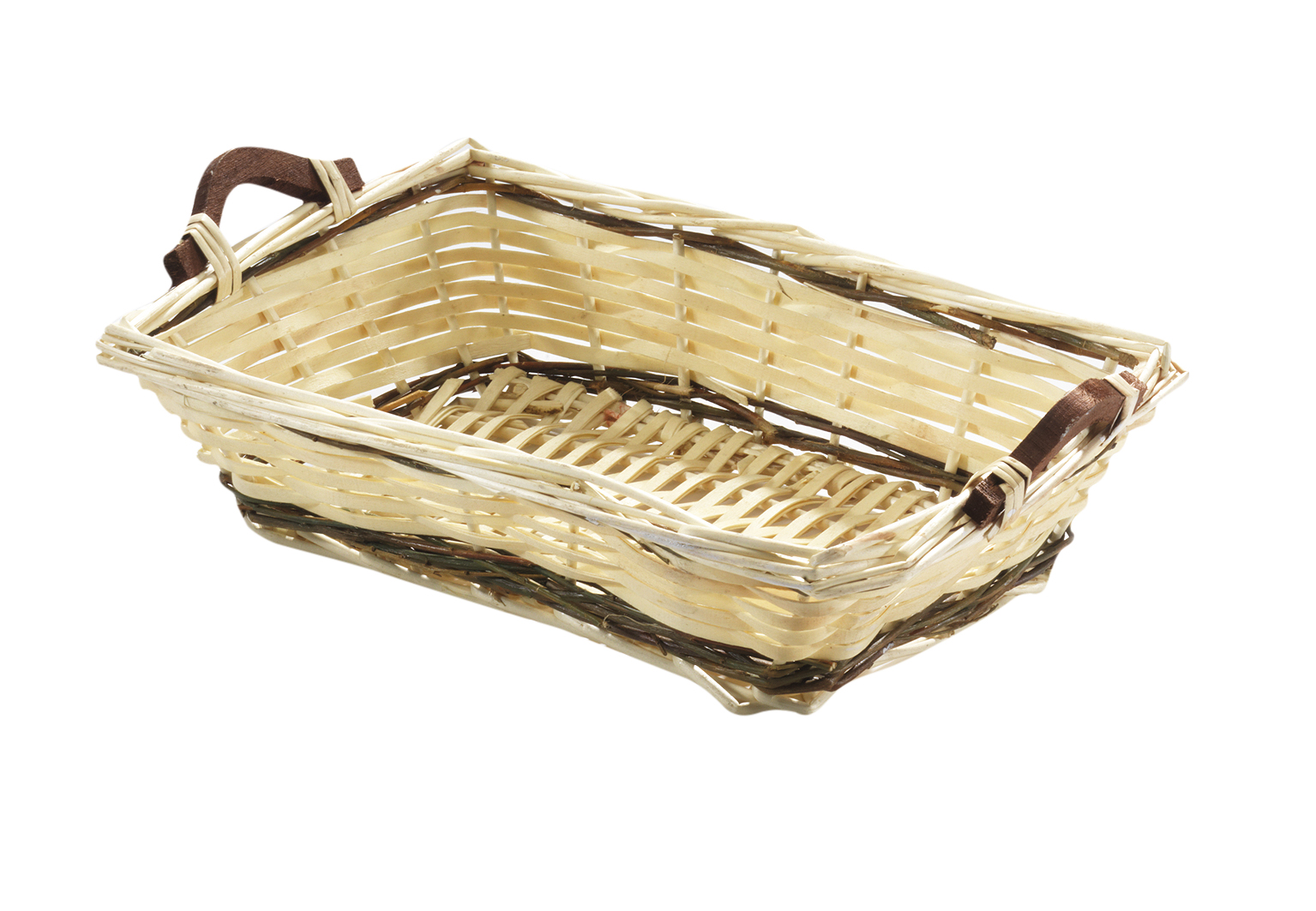 Dekoschale rechteckig mit Holzgriffen aus Weide/Holzspan