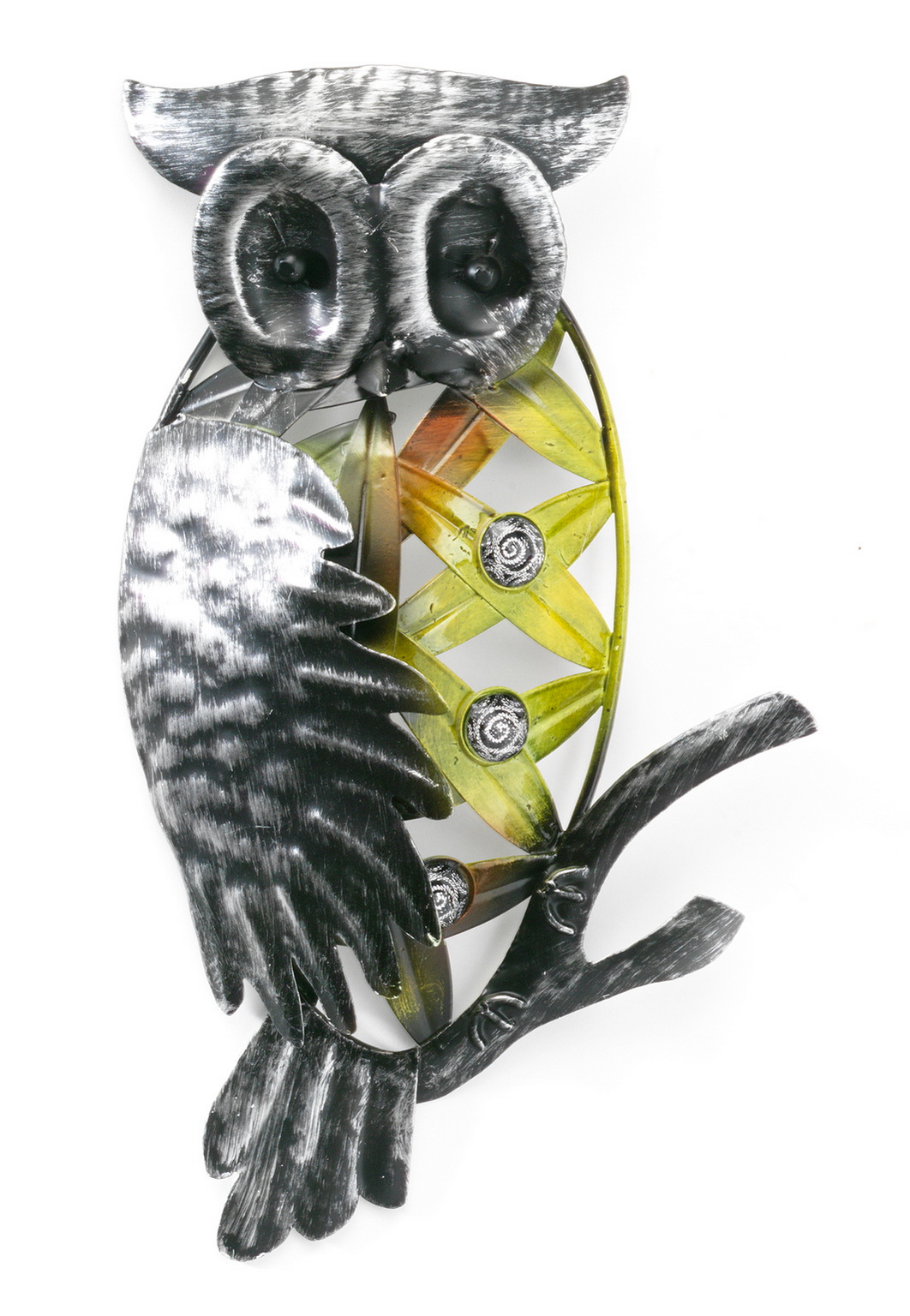 Wanddekoration Eule aus Metall mit Acrylperlen