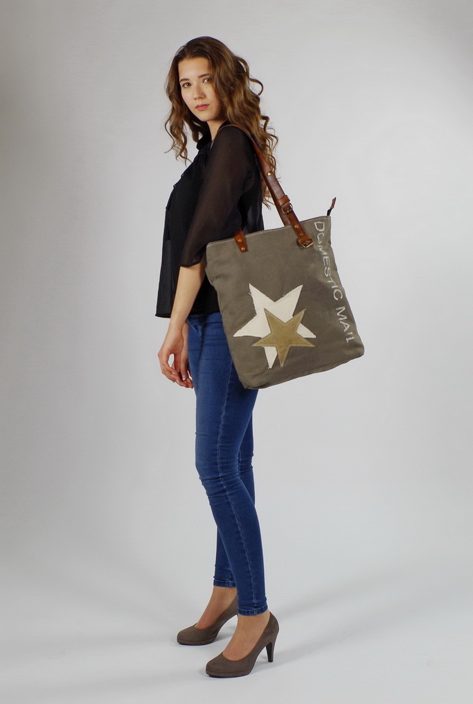 Vintage Tasche aus Canvas und Leder Twin Star mit Lederhenkel