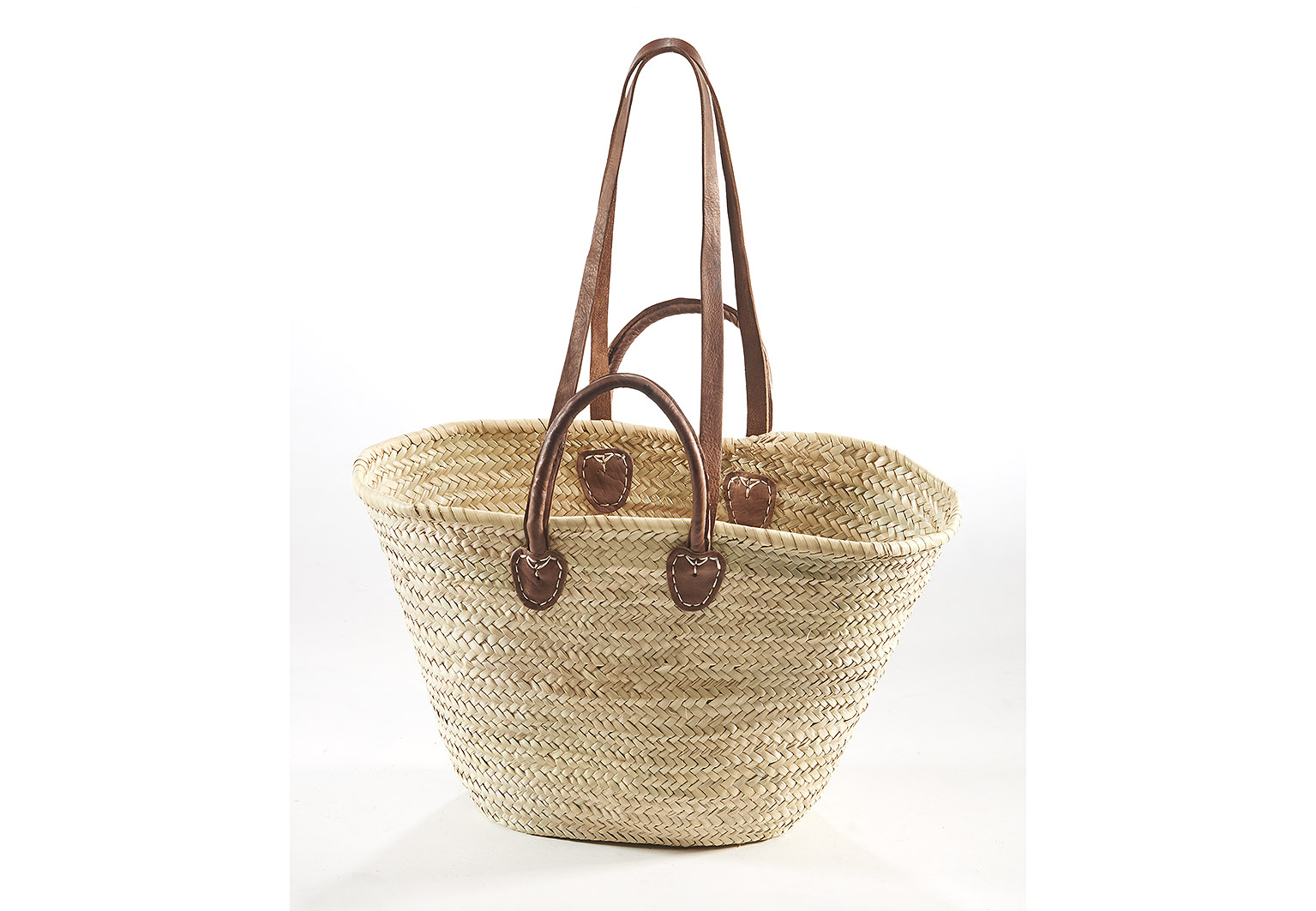 Das Original, die Ibiza-Tasche von Kobolo, in Handarbeit stabil und robust, aus Palmblatt geflochten mit langen Schulterhenkeln aus Echt-Leder und zwei zusätzlichen Griffen aus Echt-Leder. Ideal für Strand und Schwimmbad, aber auch als Shopper geeignet. Die in 100% Handarbeit hergestellte Tasche, wird in einer Spirlatechnik aus einem Palmblattzopf geflochten. Technisch bedingt wird das Ende des Zopfes schräg in den Rand der Tasche eingeflochten. Länge 52cm x Breite 14cm x Höhe 31cm