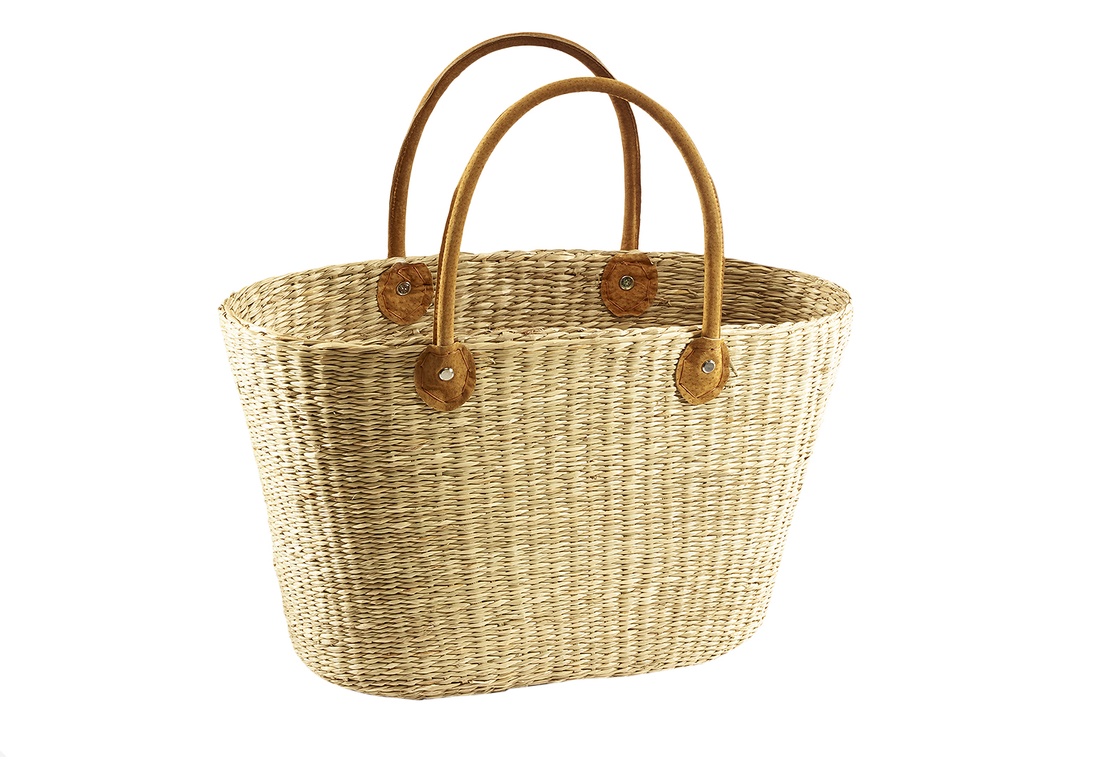 Diese aus Seegras doppelt geflochtene Tasche von Kobolo ist Ihr idealer Einkaufsbegleiter.Sie besitzt kurze Echt-Lederhenkel und eignet sich auch hervorragend als Strandtasche. Länge 38cm x Breite 23cm x Höhe 28cm