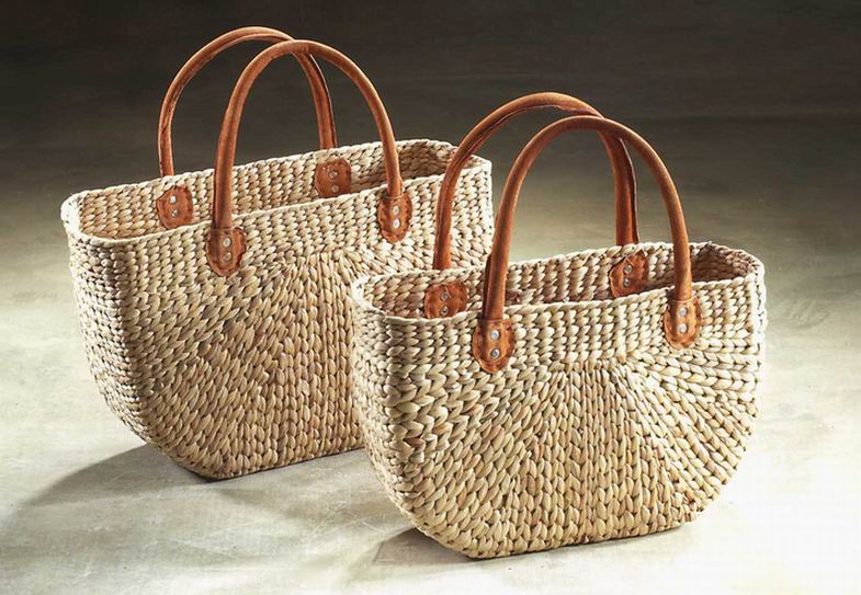 Tasche Halbmond Wasserhyazinthe Ledergriffe S/2
