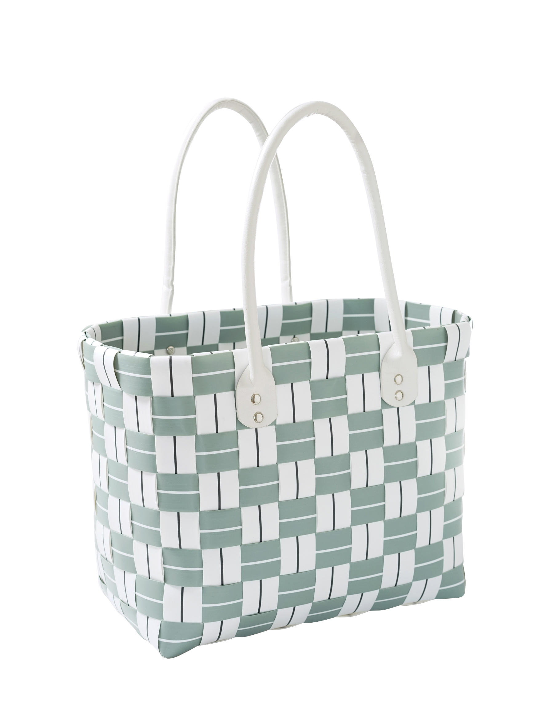 STRIPES XL - Modell in grau-grün und weiß mit extra angenehmen Henkeln aus Kunstleder für perfekten Tragekomfort. BRINGEN SIE FARBE IN IHR LEBEN - Unser Sortiment hält für jedem Geschmack den passenden Shopper parat. DIE QUAL DER WAHL - Ob klein oder groß, mit 2 oder 4 Henkeln, schlicht oder ausgefallen - Wir haben für jede Situation die richtige Einkaufstasche. LANGLEBIGES EINKAUFSVERGNÜGEN - Mit unseren Taschen aus widerstandsfähigen Kunststoffbändern finden Sie einen strapazierfähigen Begleiter der zudem leicht zu reinigen ist. Länge 50cm x Breite 18cm x Höhe 27cm