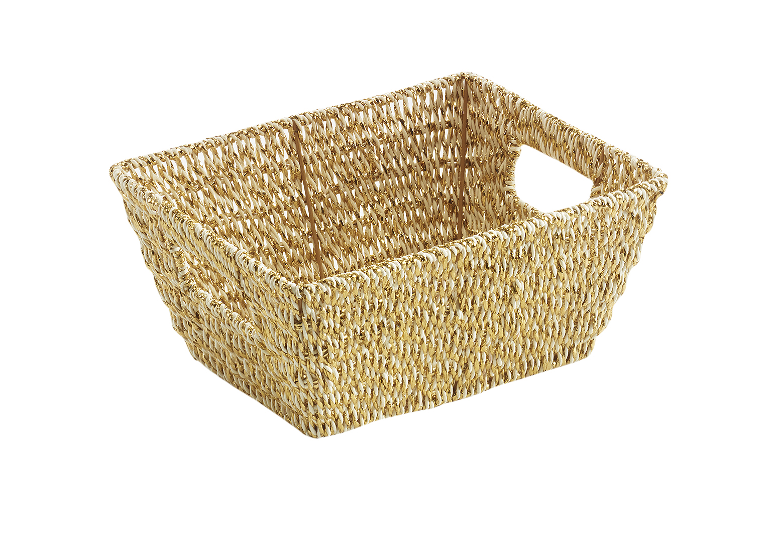 Startseite » Weihnachten » Dekoschale rechteckig mit Griffen aus Foliengeflecht auf Metallgerüst in weiss und gold