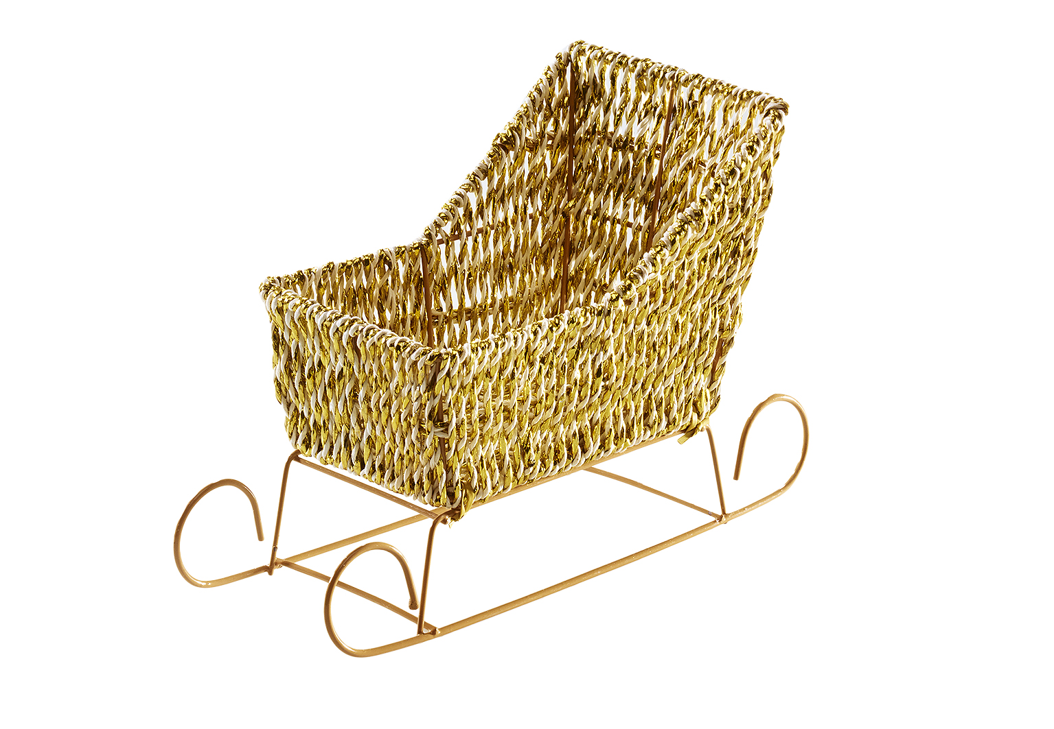 Startseite » Weihnachten » Dekoschlitten aus Foliengeflecht auf Metallgerüst in weiss und gold