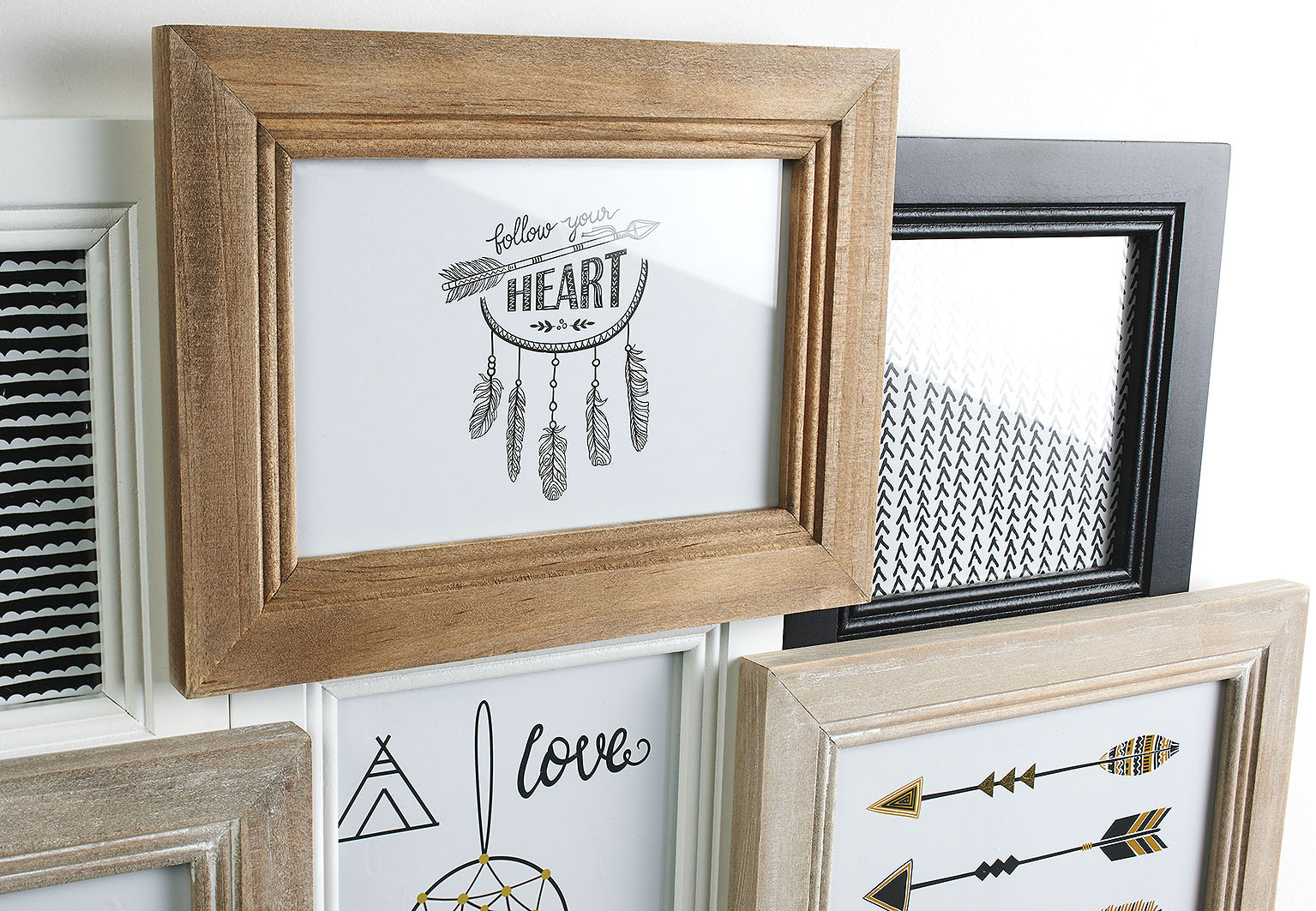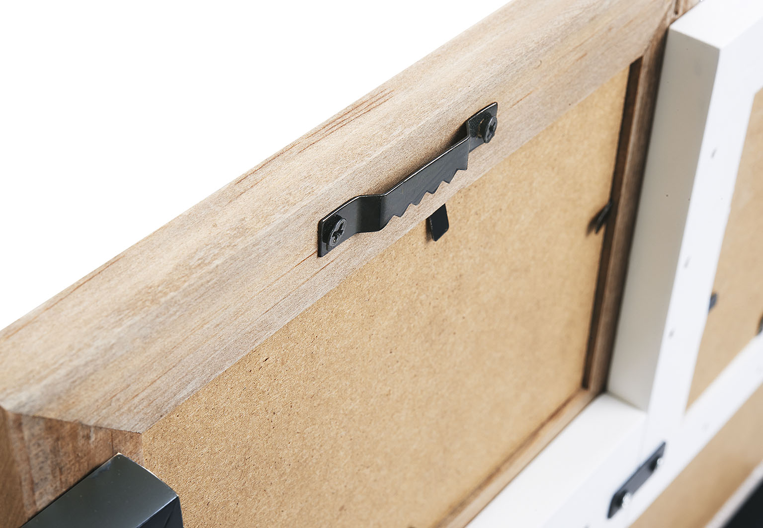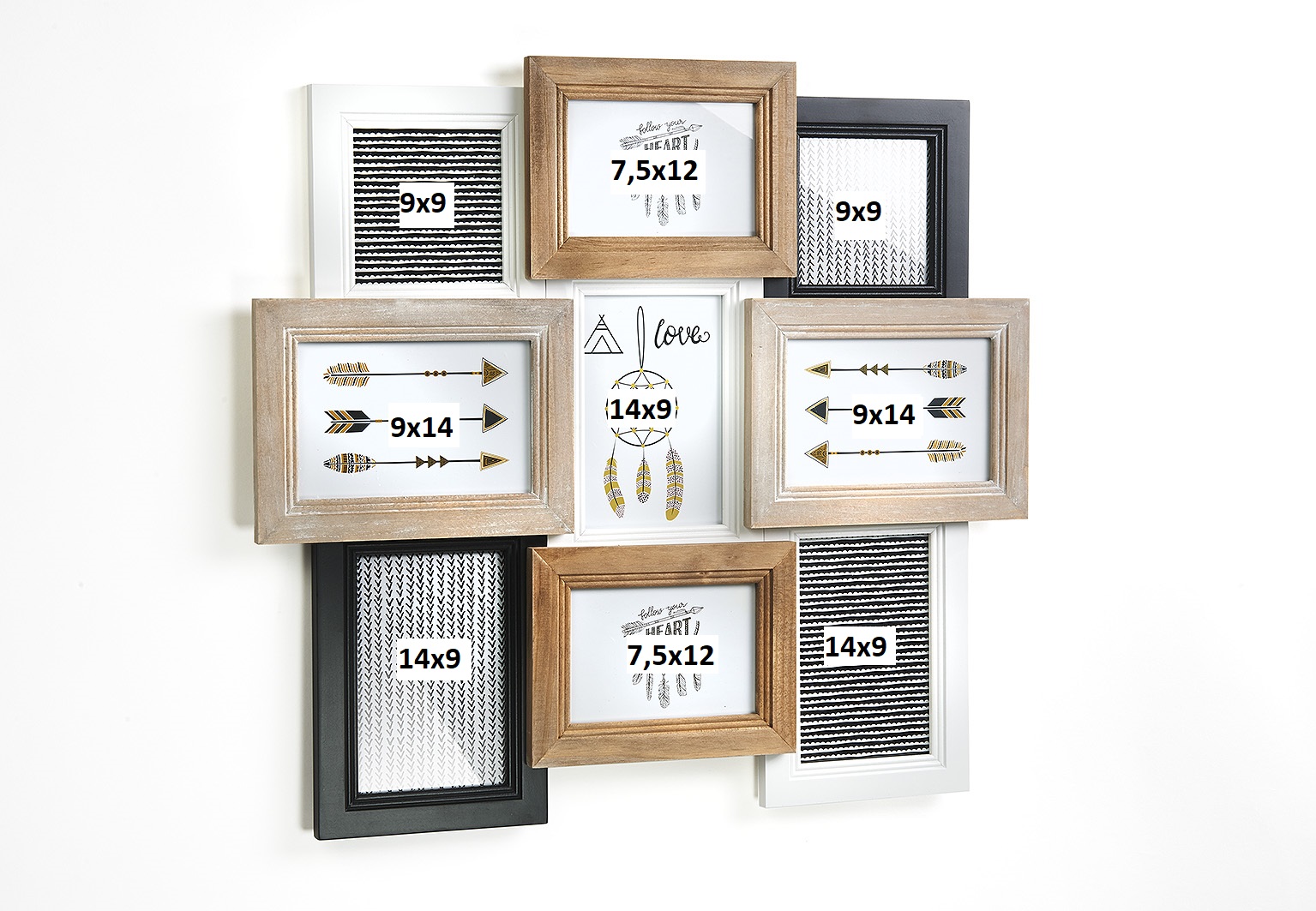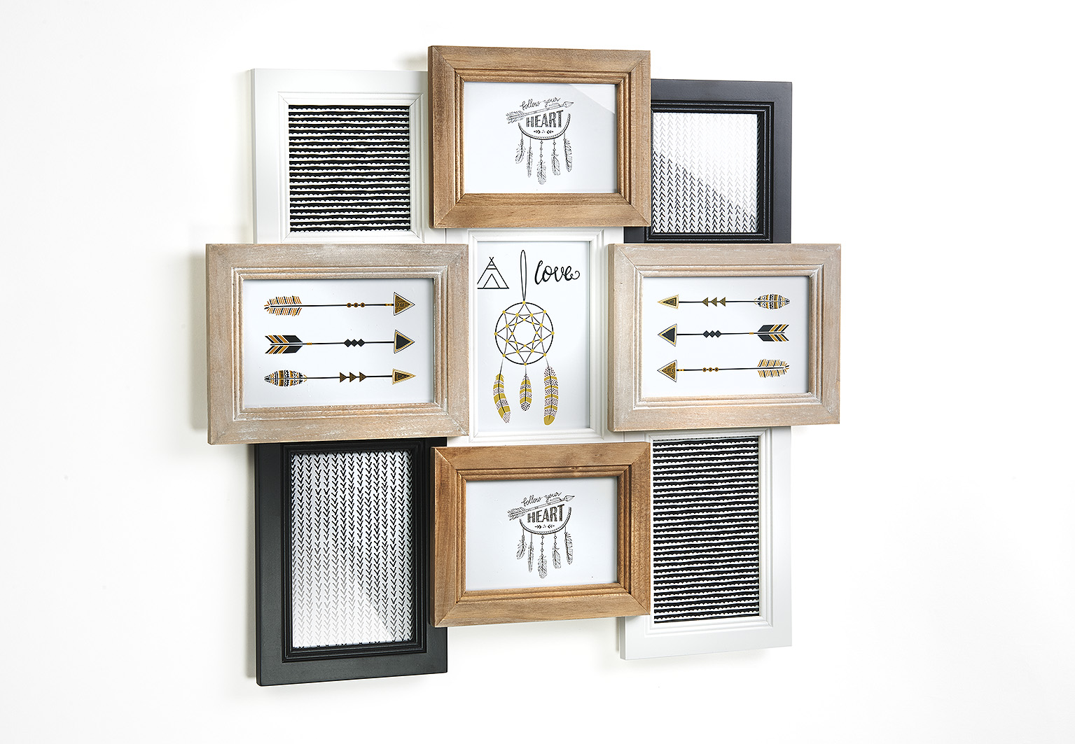 Wunderschöne Bilderrahmen-Collage aus Holz im Vintage-Stil von Kobolo. Die Collage bietet Platz für bis zu neun Bilder verschiedenster Größen. Die Farbtöne sind gut zu allen Einrichtungsstilen zu kombinieren und zaubern ein modernes Ambiente in Ihr Zuhause. Mit einer Metallöse zum Aufhängen. Länge 49cm x Breite 3cm x Höhe 46cm