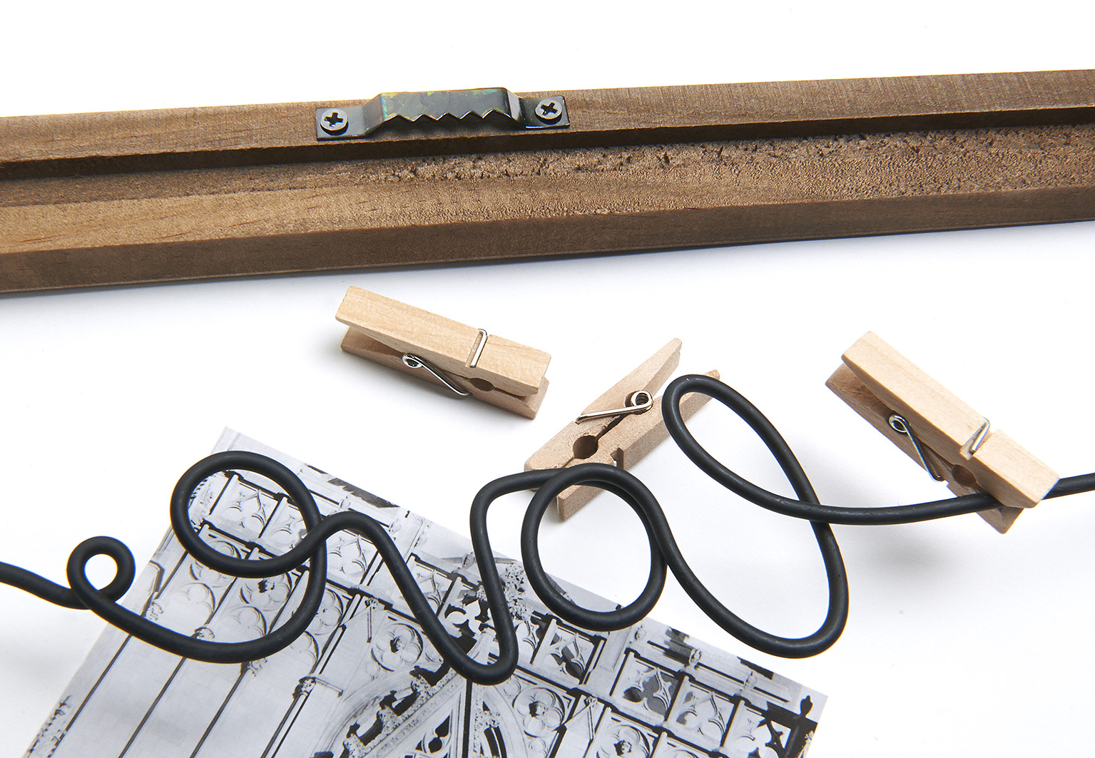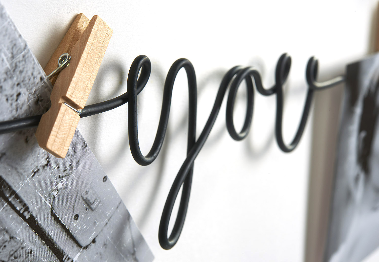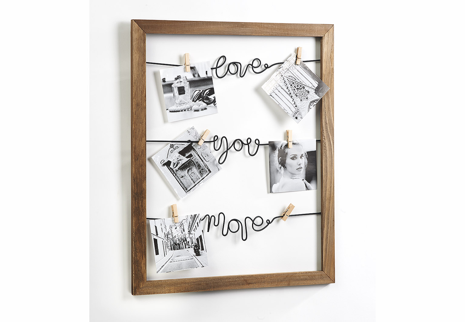 Origineller Bilderhalter aus Holz und Metall von Kobolo. Ihre Bilder werden, wie an einer Leine, mit Klammern befestigt. Ein tolles Accesiore für den modernen Haushalt, dass sich auch wunderbar als Geschenk eignet. Der Rahmen verfügt über eine Aufhängeöse aus Metall. Länge 40cm x Breite 2cm x Höhe 50cm