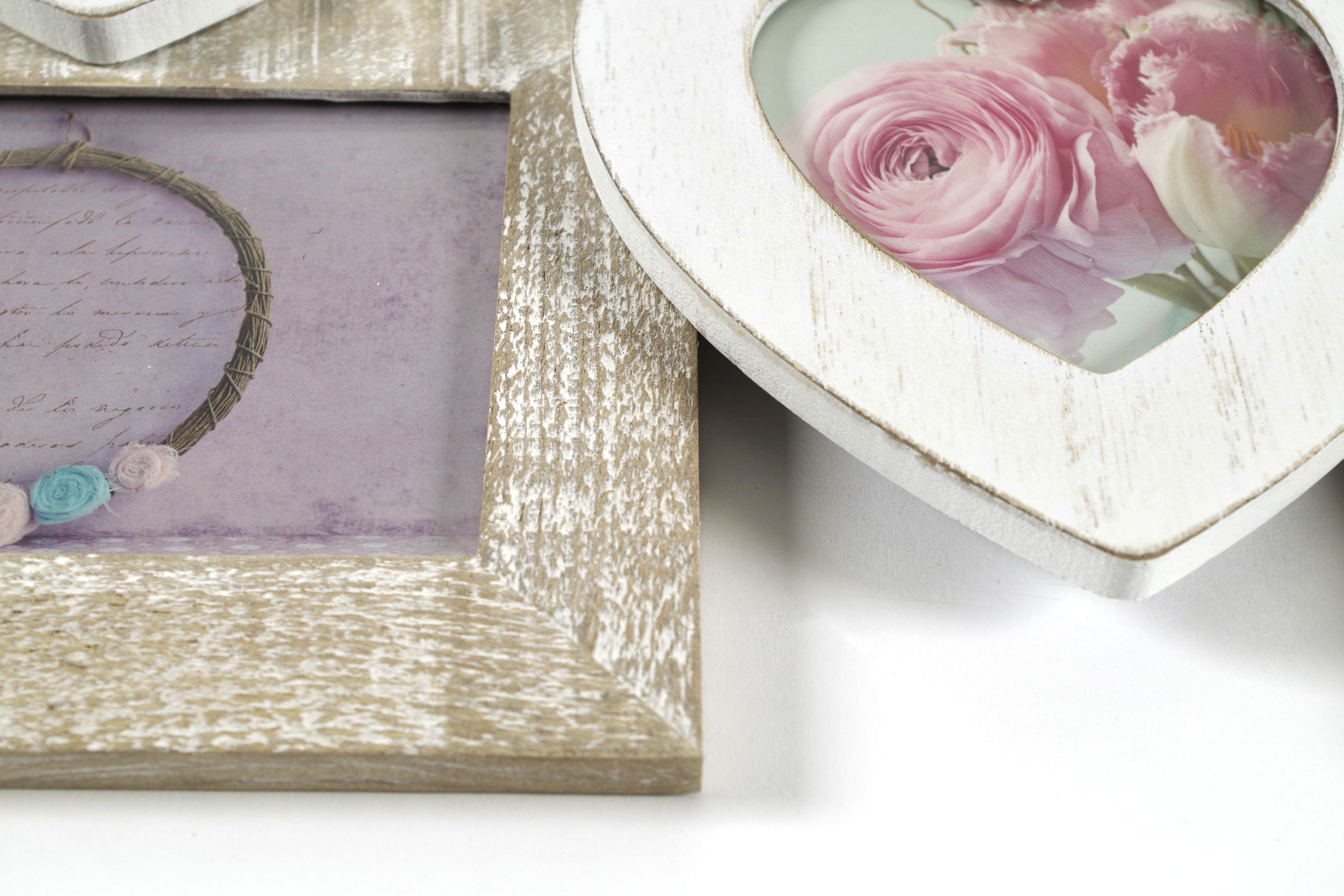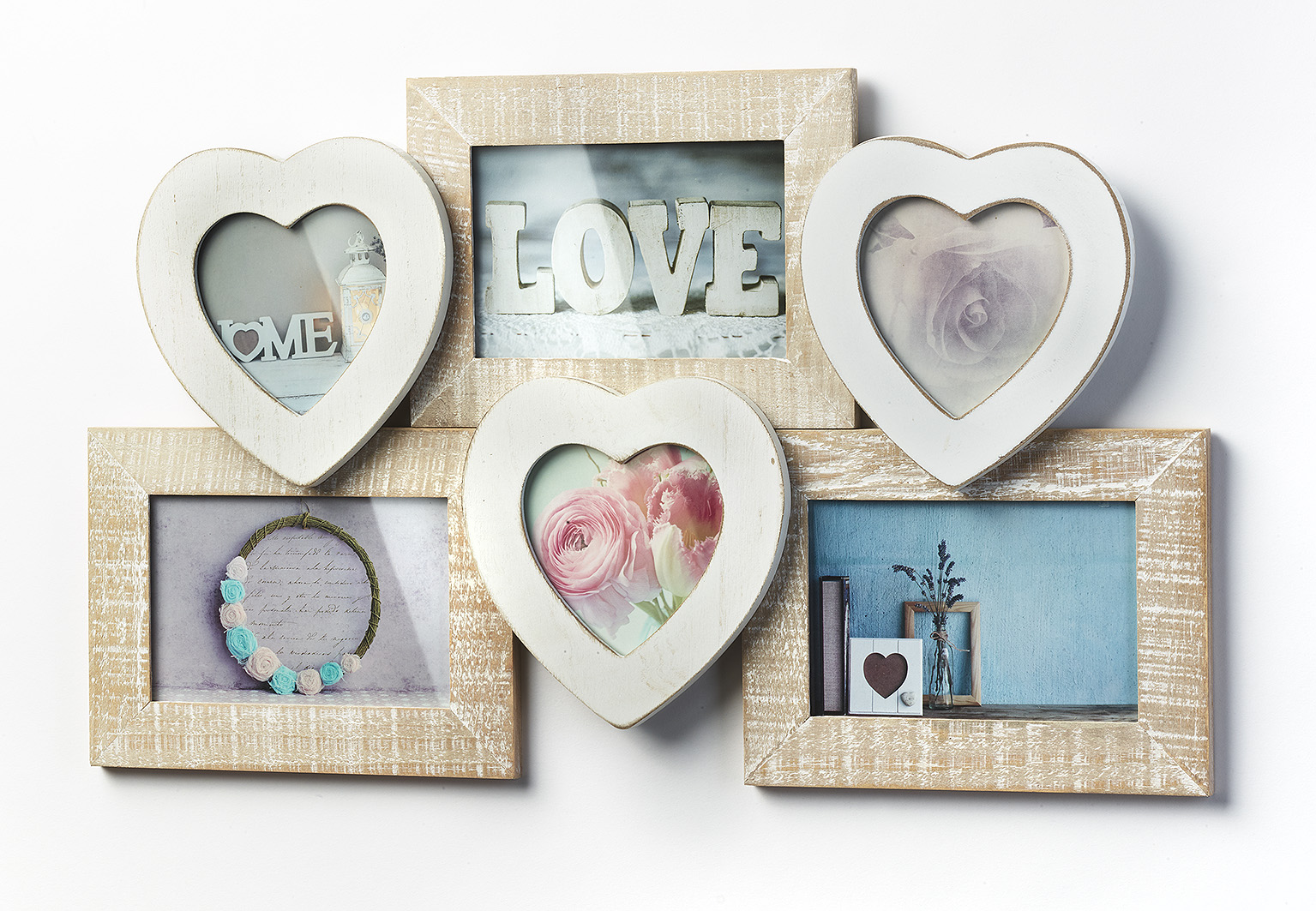 ROMANTIK PUR - Wunderschöne, romantische Bilderrahmen-Collage aus Holz von Kobolo. LIEBLINGSMOMENTE - Die Collage bietet Platz für bis zu sechs Bilder. IMMER PASSEND - Die natürlichen Farben passen in jeden Einrichtungsstil und zaubern ein modernes Ambiente in Ihr Zuhause.EIN ECHTER HINGUCKER - Durch die drei Rahmen in Herzform ist dieser Bilderrahmen ein Blickfang in jedem Zimmer. Länge 50cm x Breite 2cm x Höhe 30cm