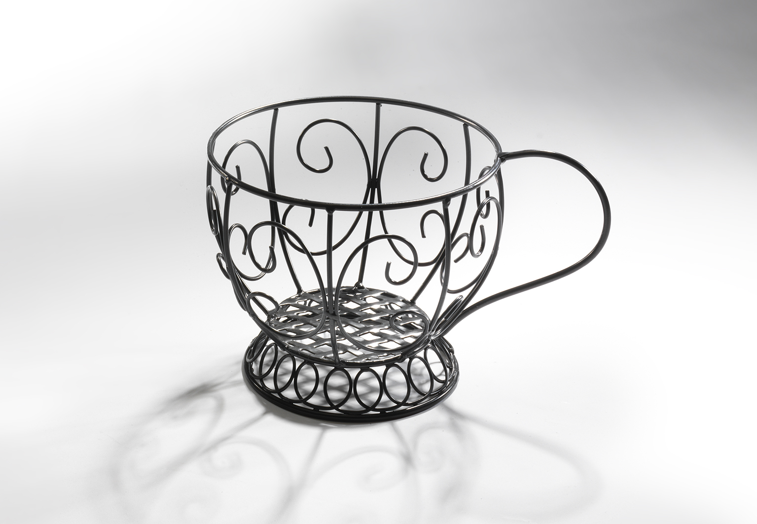 Mit dieser ästhetischen Tasse aus Metall können sie ihre Wohnung und ihren Garten verschönern. Durch die Größe der Tasse sind ihrer Fantasie beim Ausschmücken keine Grenzen gesetzt.Die aus schwarzem Draht, in schönen Rundungen, gestaltete Deko-Tasse, kann mit getrockneten, sowie frischem Grünzeug oder mit schönen Gestecken ausgeschmückt werden und wird somit der Hingucker für jeden Hauseingang oder auch auf dem Balkon. Länge 26cm x Breite 20cm x Höhe 17cm