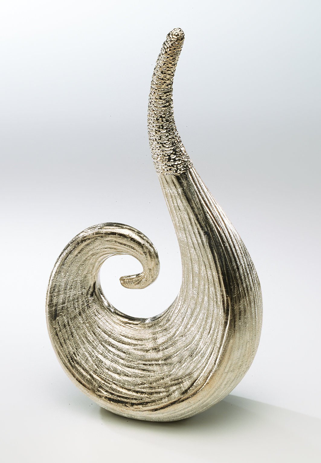 Die Deko-Skulptur von Kobolo ist aus Keramik gefertigt und ganz in elegantem Gold gehalten. Ihr geschwungenes und zeitloses Design machen die Keramik-Skulptur zum Highlight jeder Dekoration. Je nach Lichteinfall entsteht ein Farbeffekt von Gold bis Silber. Länge 16cm x Breite 7cm x Höhe 29cm