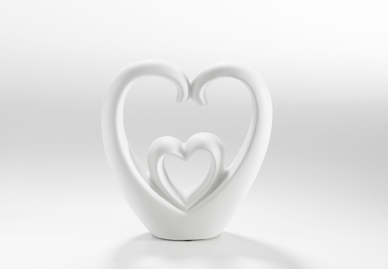 Dekoskulptur aus Keramik in Herzform von Kobolo. Liebevoll gefertigte Dekoskulptur in Form von 2 Herzen. Verleiht jedem Raum eine herzliche Atmosphäre. Tolle Geschenkidee für viele Gelegenheiten z.B. Hochzeit, Verlobung usw. Länge 19cm x Breite 6cm x Höhe 21cm