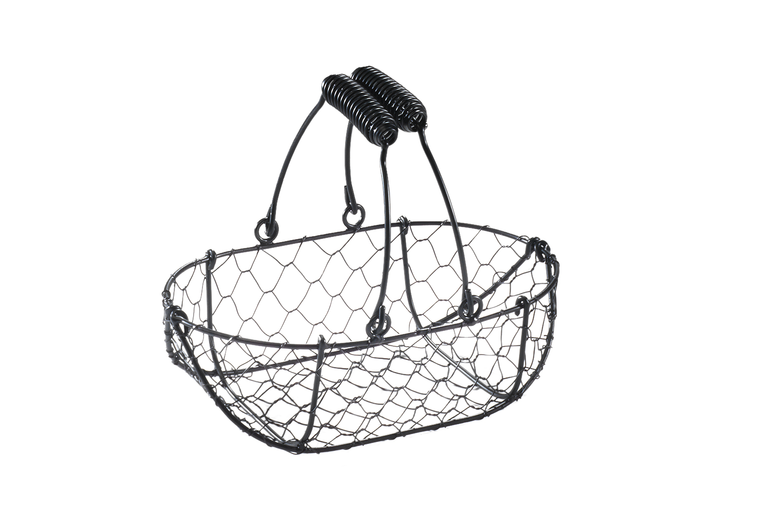 Drahtkorb oval aus Metall schwarz mit Henkeln