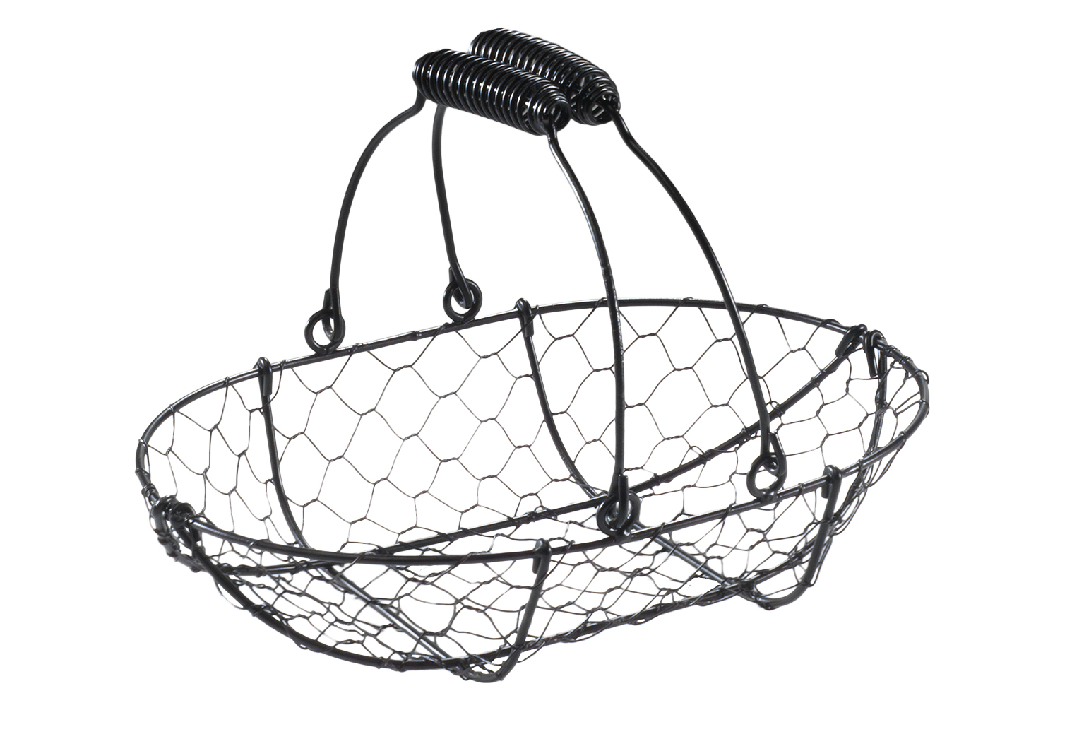 Der flache, ovale Drahtkorb von Kobolo ist aus schwarzem Metall gefertigt und eigent sich unter anderem sehr gut als Dekokorb. Mit zwei praktischen Henkeln versehen, ist der Metallkorb außerdem ein wunderbarer Geschenkkorb. Länge 29cm x Breite 19cm x Höhe 7cm
