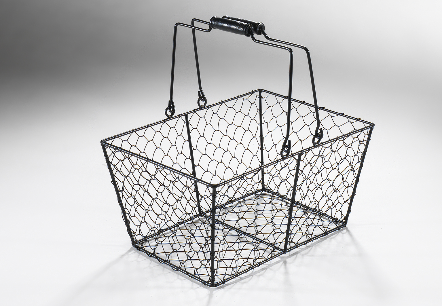 Drathkorb rechteckig aus Metall schwarz mit Henkeln
