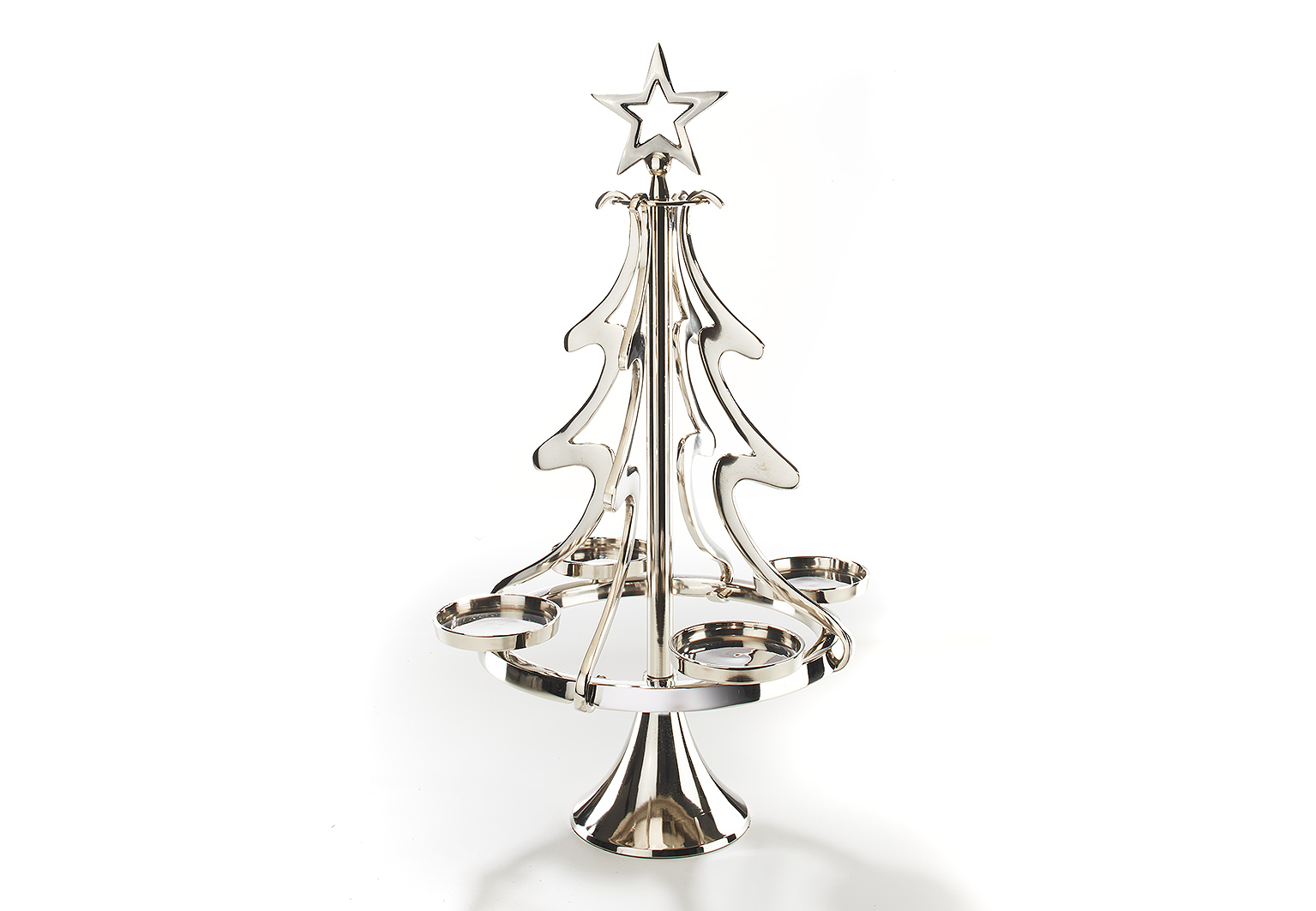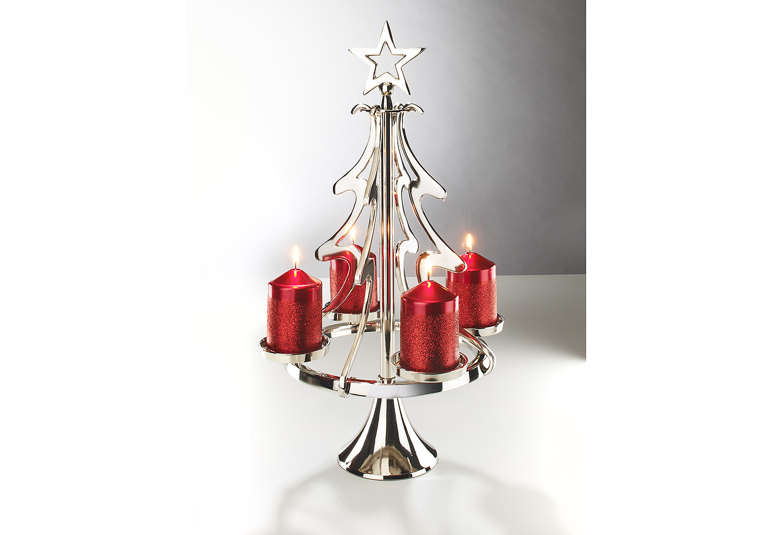 Dieser Kerzenständer von Kobolo wertet mit Leichtigkeit jedes Zimmer optisch auf. Der edle Kerzenhalter in Form eines Weinachtsbaumes vereint den idyllischen Landhausstil mit modernen Elementen und ist deshalb mit nahezu jedem Wohnkonzept kombinierbar. Der außergewöhnliche Kerzenständer ist ein wunderbares Dekoelement und wird bei Hobby-Raumausstattern wahre Begeisterungsstürme auslösen. Ob im Wohnzimmer, Esszimmer oder der Küche, der moderne Kerzenhalter schafft in nahezu jedem Raum ein ganz besonderes Wohnambiente - Lieferung ohne Deko.Durchmesser 32cm x Höhe 55cm