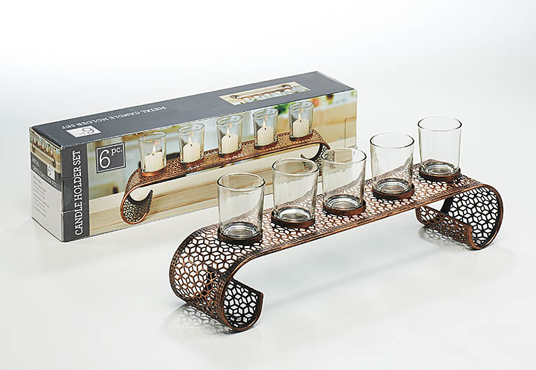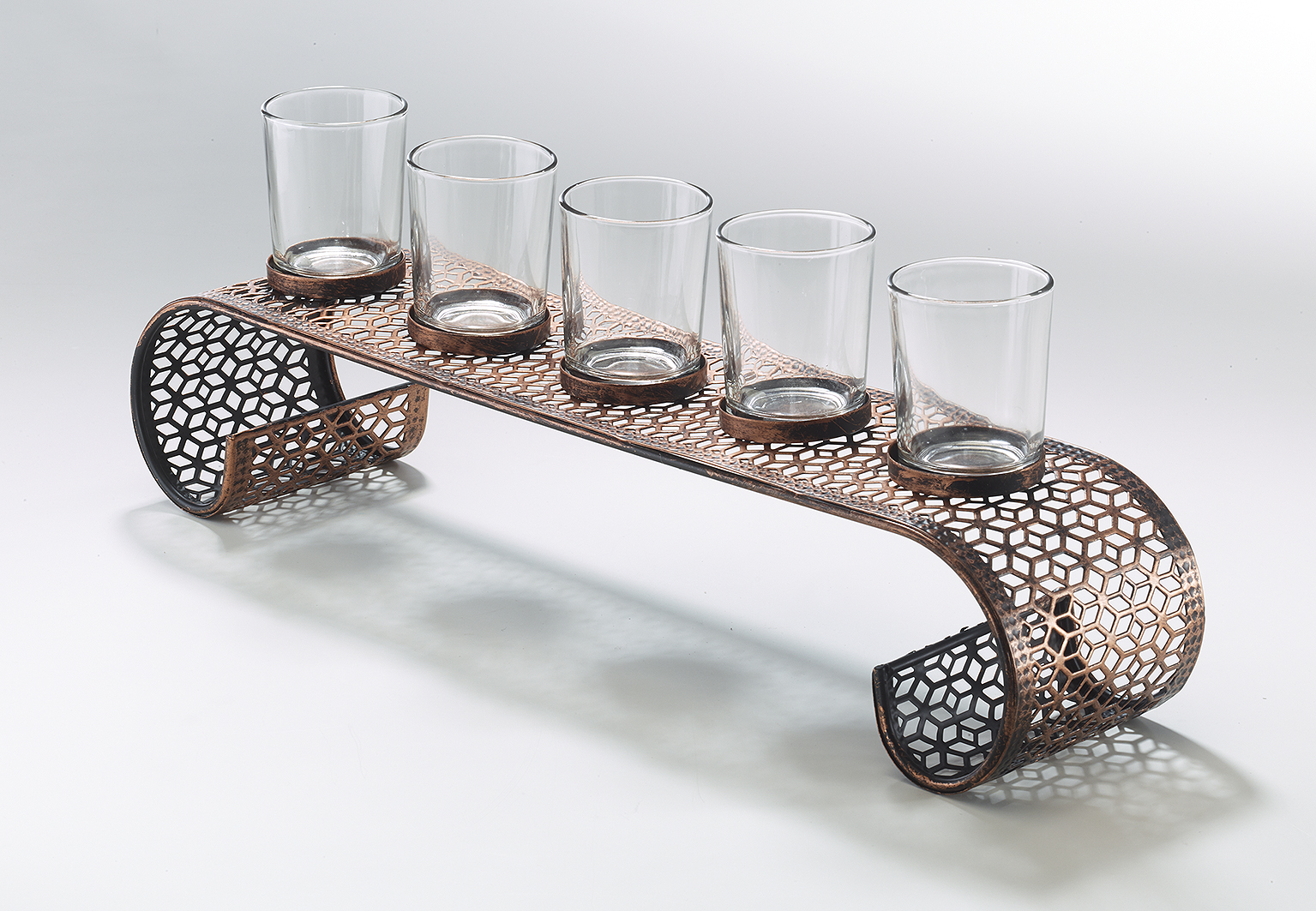 Wunderschöner Kerzenhalter aus Metall von Kobolo. Raffinierter Kerzenhalter mit filigranem Muster und 5 Gläsern für 5 Kerzen. Für ein angenehmes Wohnambiente oder als Geschenk ein echter Geheimtipp. Lieferung ohne Kerzen ohne Deko. Länge 44cm x Breite 10cm x Höhe 9cm
