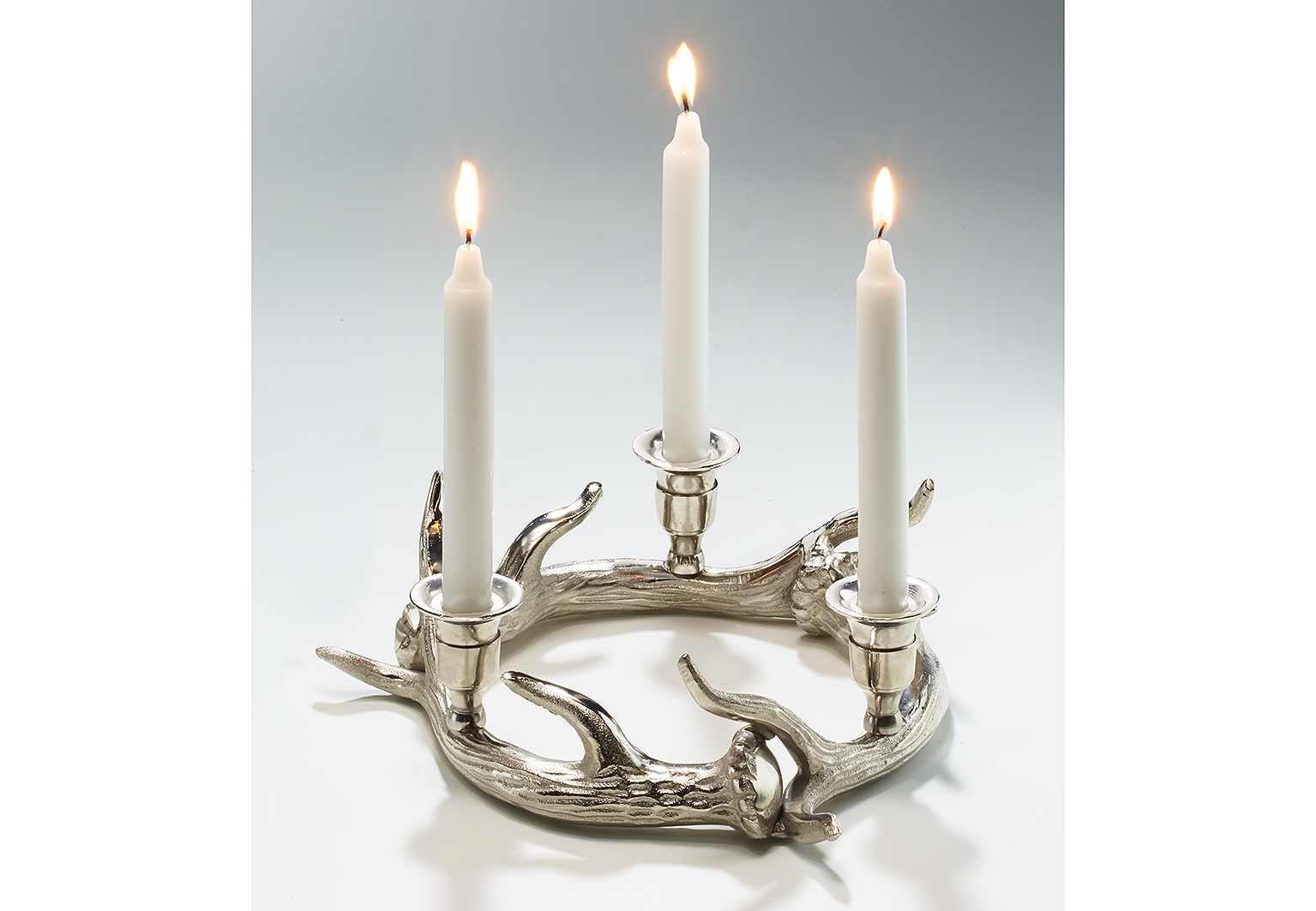 Dieser Kerzenständer von Kobolo wertet mit Leichtigkeit jeden Ess- oder Wohnzimmertisch optisch auf. Der edle Kerzenhalter in runder Geweihoptik vereint den idyllischen Landhausstil mit modernen Elementen und ist deshalb mit nahezu jedem Wohnkonzept kombinierbar. Der außergewöhnliche Kerzenständer ist ein wunderbares Dekoelement und wird bei Hobby-Raumausstattern wahre Begeisterungsstürme auslösen. Ob im Wohnzimmer, Esszimmer oder der Küche, der moderne Kerzenhalter schafft in nahezu jedem Raum ein ganz besonderes Wohnambiente - Lieferung ohne Deko.Durchmesser 28cm x Höhe 8cm