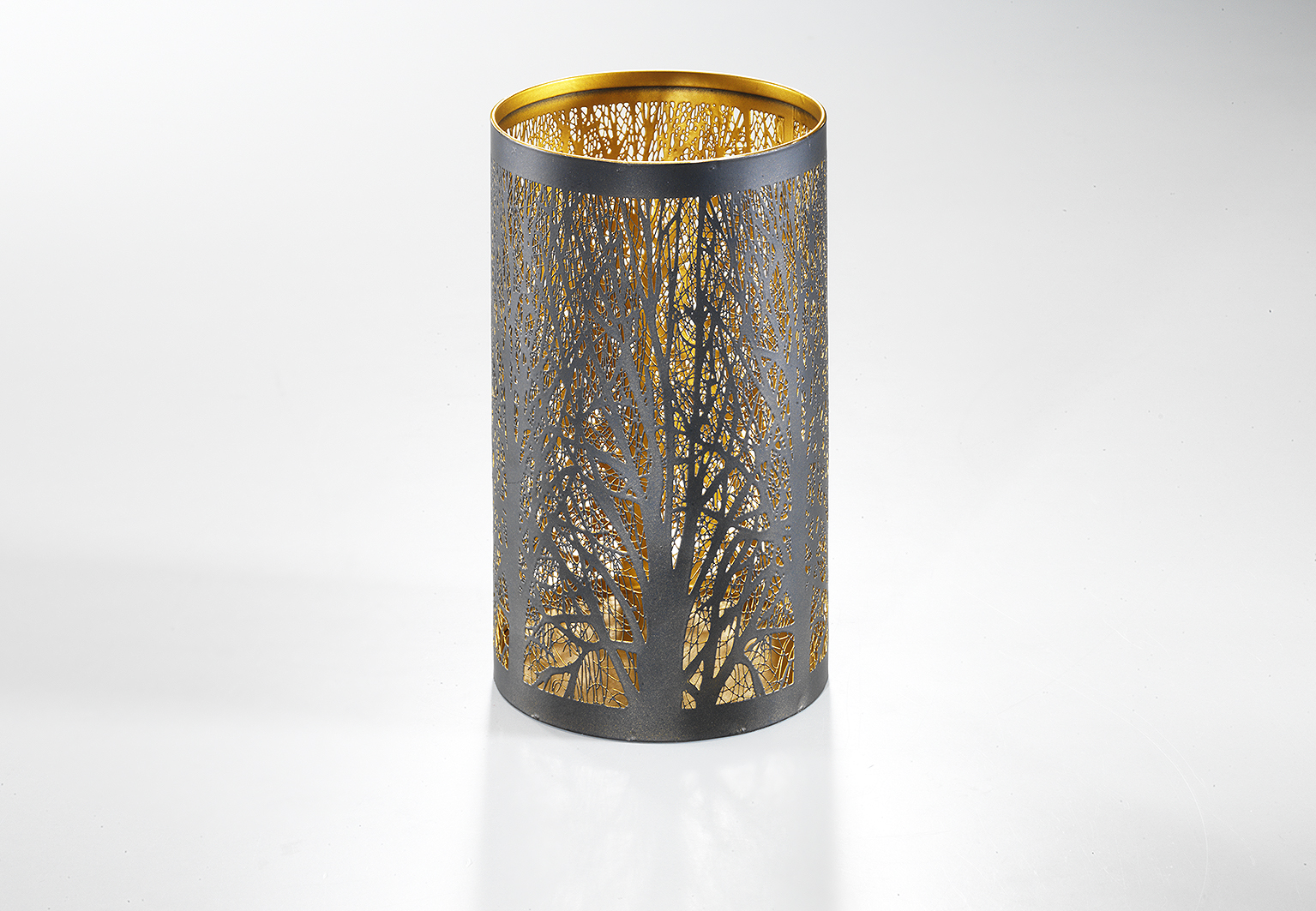 Der Teelichthalter aus Metall von Kobolo ist ganz in edlem Schwarz und Gold gehalten und verleiht so jedem Raum eine besondere Note. Das detailreiche Astmuster ist präzise gearbeitet und macht den metallenen Teelichthalter zu einem wunderbaren Dekoartikel.Durchmesser 10cm x Höhe 17cm