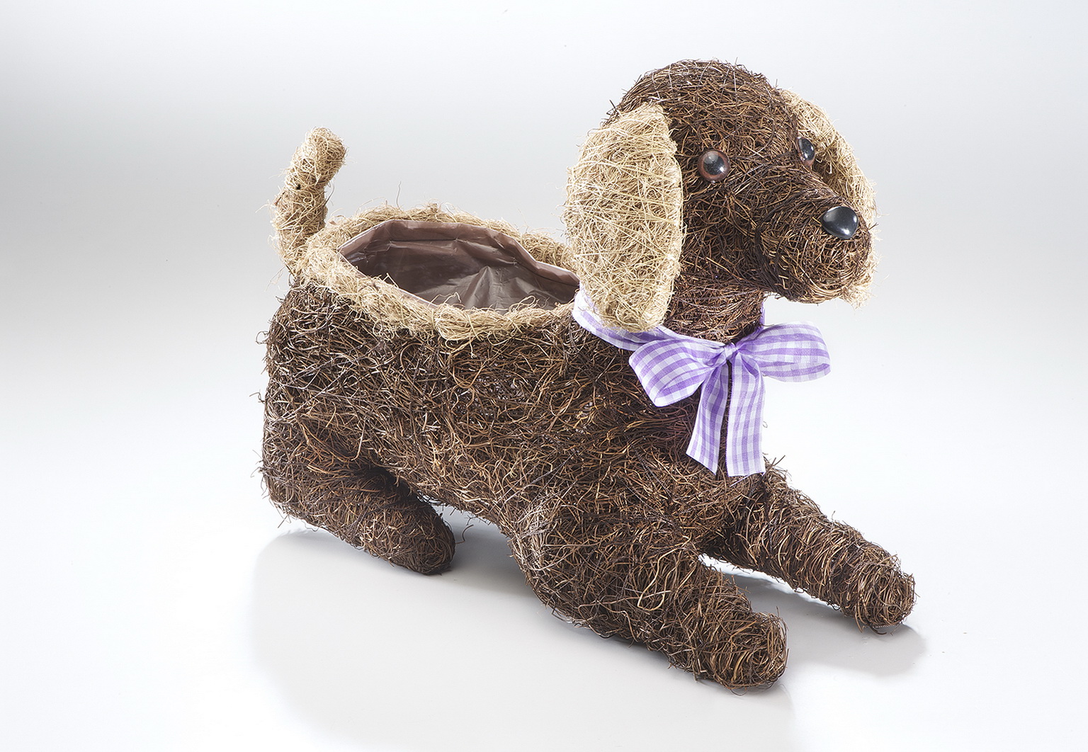 Startseite » Wohnen » Figuren » Deko-Hund aus Rattan zum Bepflanzen mit Folie ausgeschlagen groß