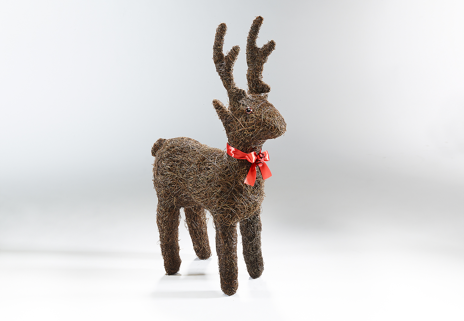 Liebevoll gestaltetes Deko-Rentier aus Rattan von Kobolo. Eine schöne Weihnachtsdekoration, die viele Blicke auf sich zieht. Erhältlich in zwei Größen. Diese und weitere tolle Geschenkideen finden Sie auch in unserem Shop. Länge 45cm x Breite 18cm x Höhe 70cm