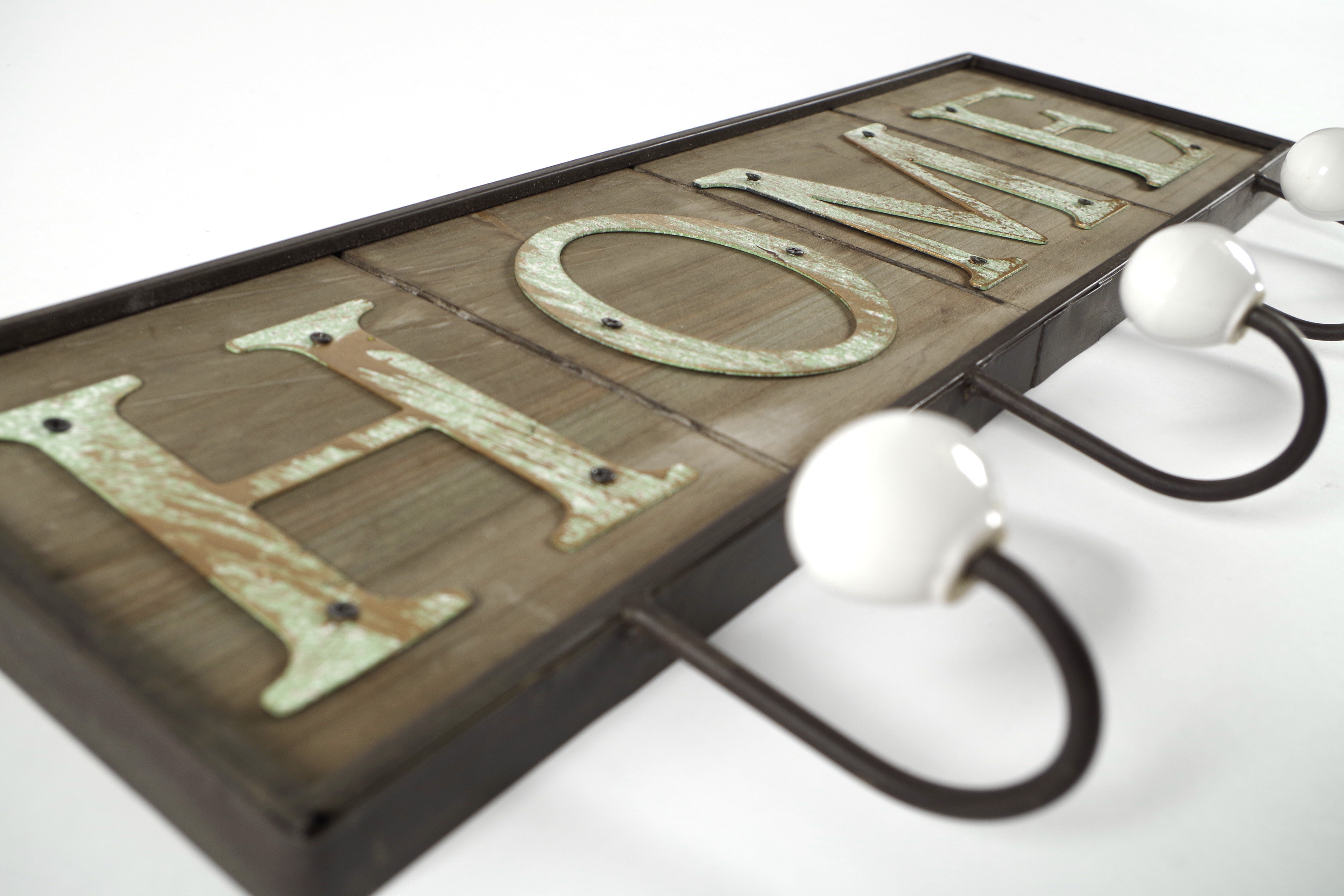 Originelle Garderobenleiste mit Schriftzug aus Holz und Metall von Kobolo. Verbindet elegant den Vintagestil mit modernen Elementen. Diese Garderobe fügt sich perfekt in viele Einrichtungsstile ein und wird zum Hingucker in ihrer Wohnung. Passend als ausgefallenes Geschenk oder um sich selbst eine Freude zu bereiten - Lieferung ohne Deko. Länge 49cm x Breite 7cm x Höhe 22cm