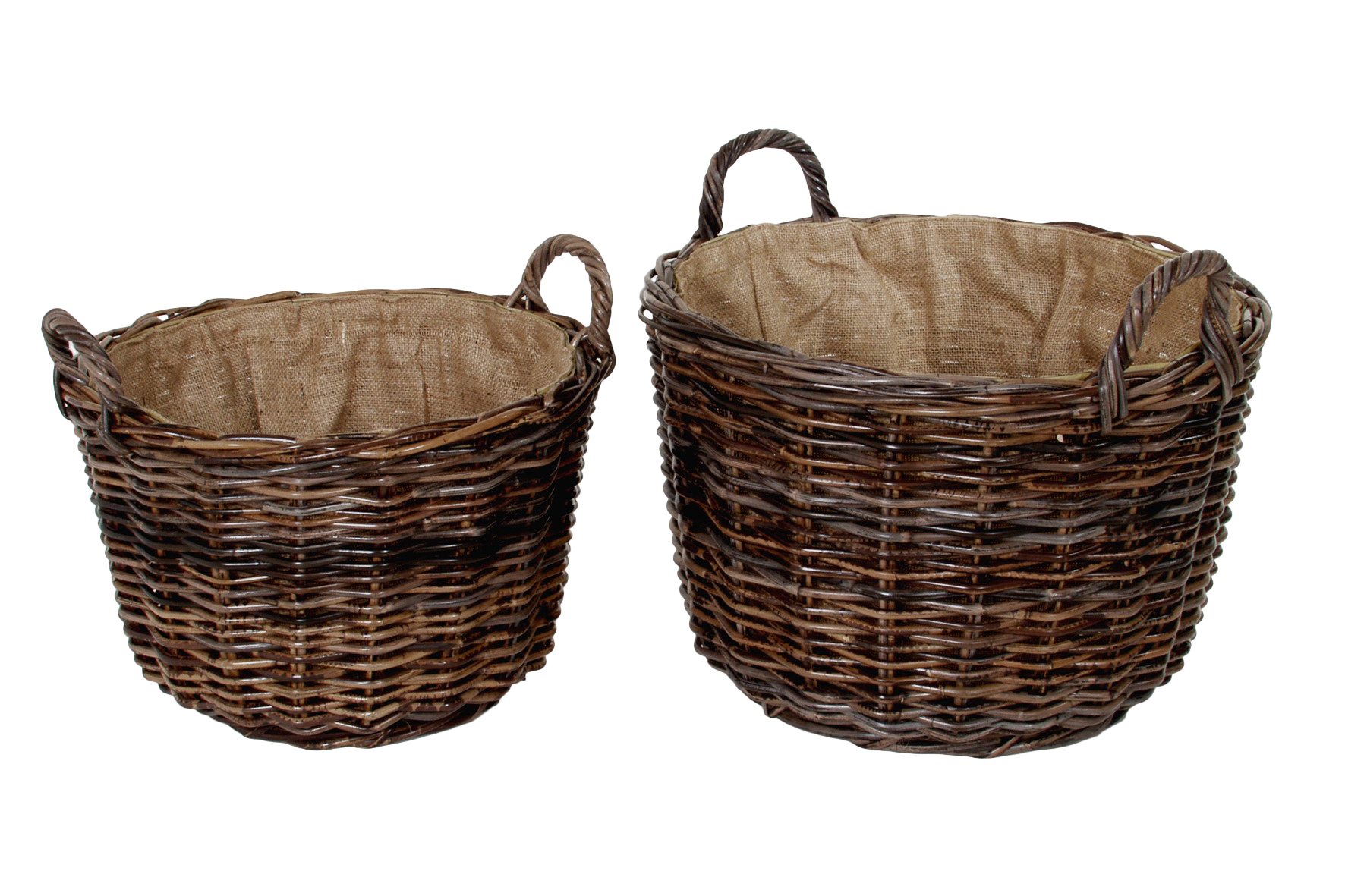 Holzkorb Krabu Rattan rd. Leinen S/2