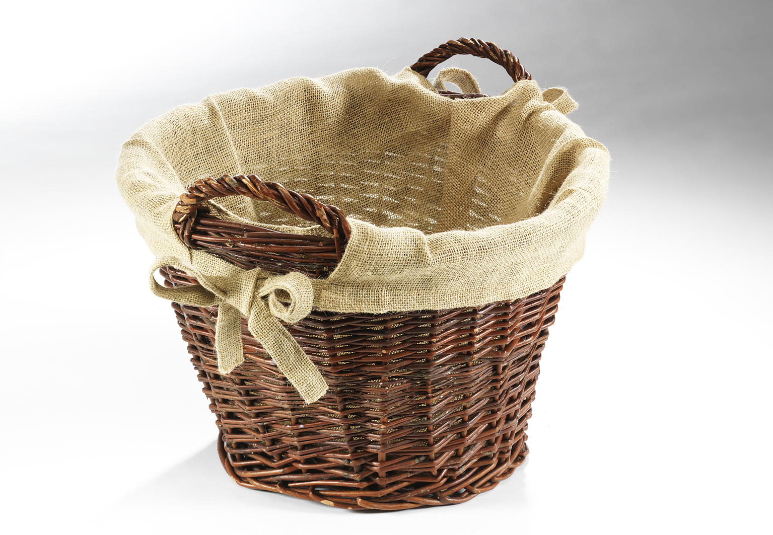 Holzkorb ungeschälte Weide Leinen