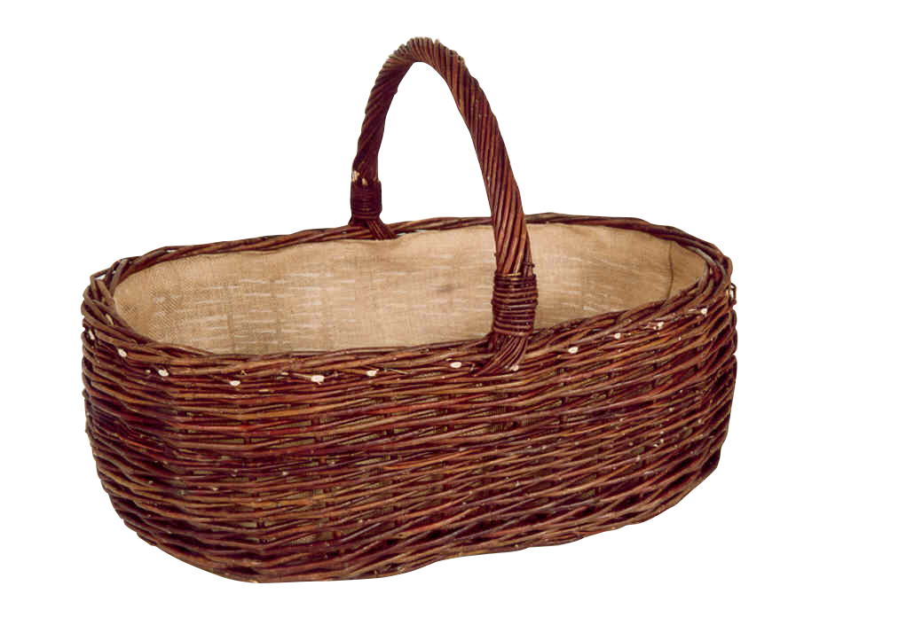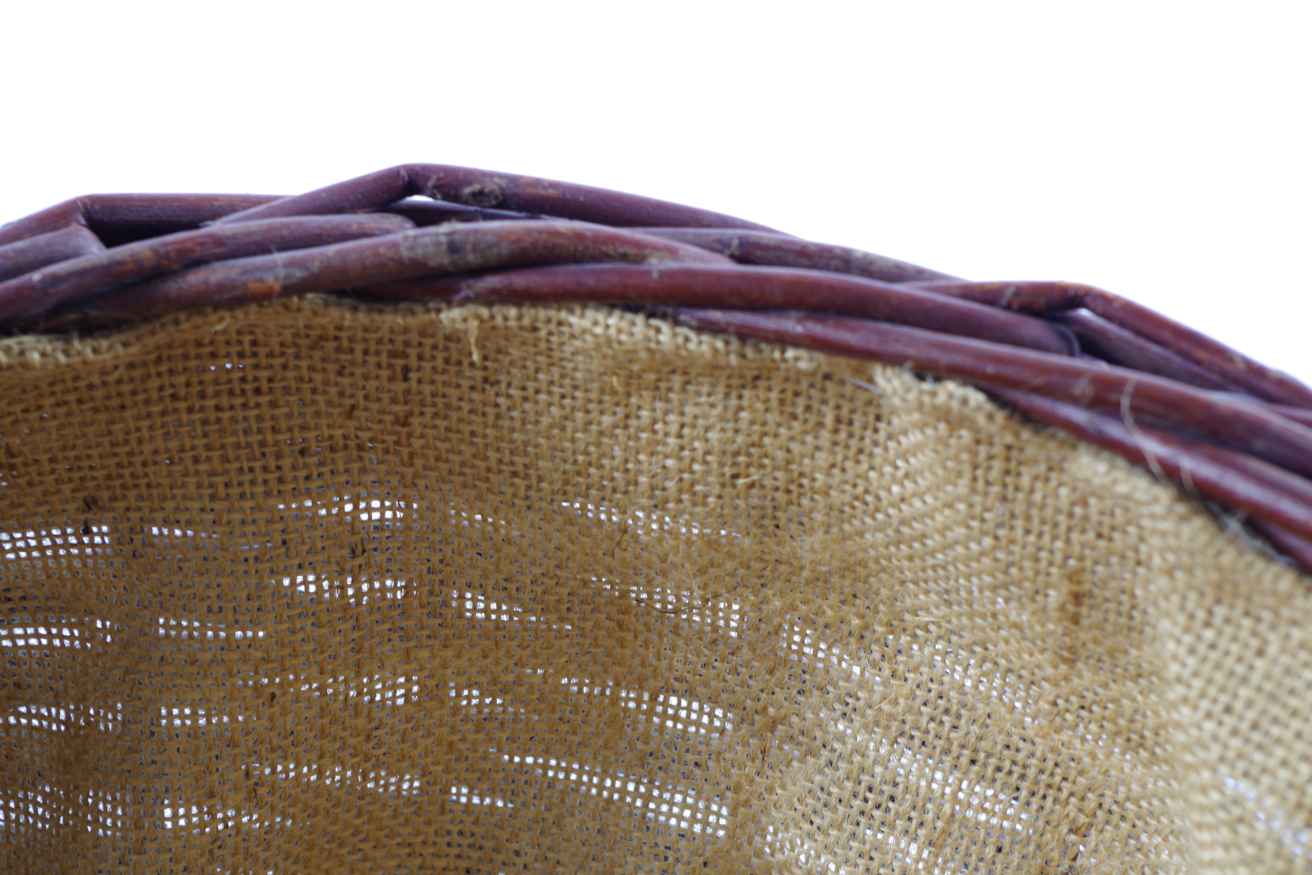 Ovaler Kaminholzkorb von Kobolo, aus ungeschälter Weide in Handarbeit geflochten, ausgeschlagen mit Jutefutter für den Schutz Ihrer Wohnung vor Holzrückständen, zur Aufbewahrung von Kaminholz. Länge 64cm x Breite 43cm x Höhe 23cm