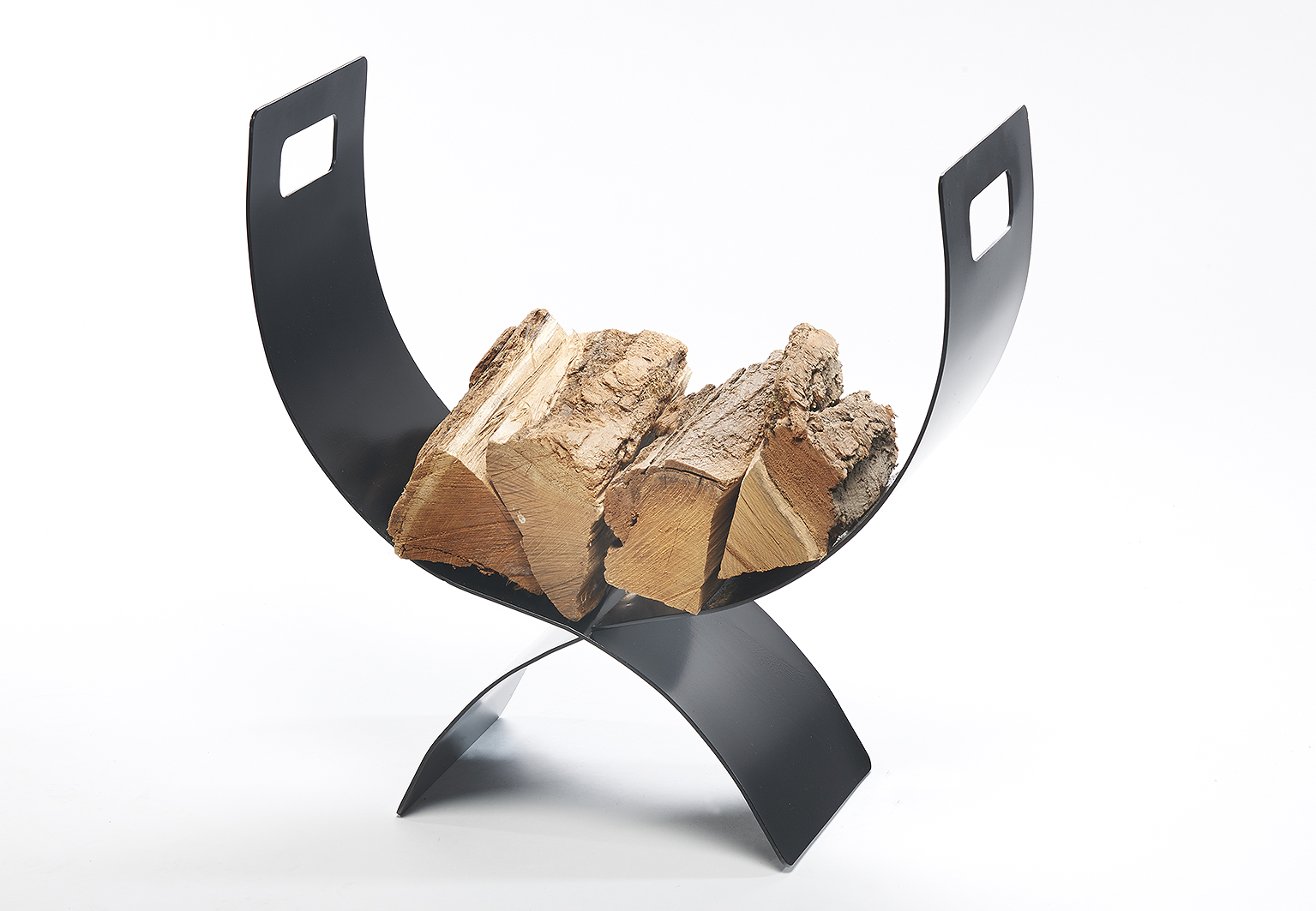 Dekorative Aufbewahrungsmöglichkeit/Holzlege CUP für Kaminholz von Kobolo. Aus stabilem Metall mit moderner, schwarzer Lackierung. Fügt sich perfekt in jeden Wohnstil ein und sorgt für ein edles Ambiente. Kann zur Aufbewahrung, platzsparend zusammengeklappt werden. Länge 47cm x Breite 24cm x Höhe 58cm