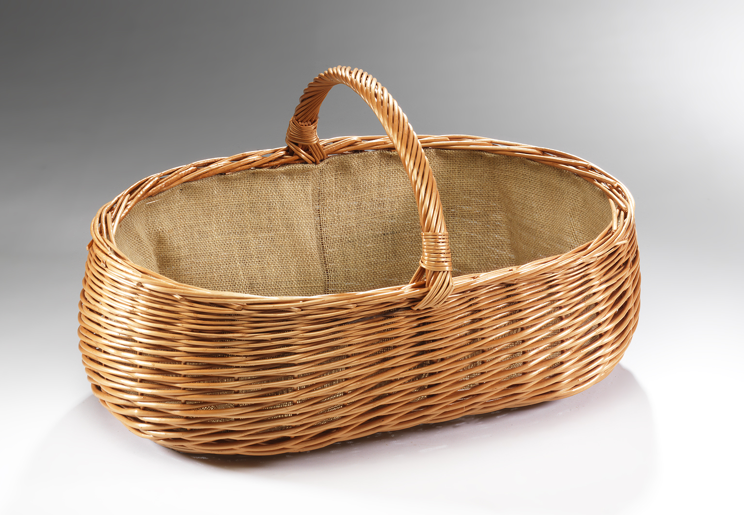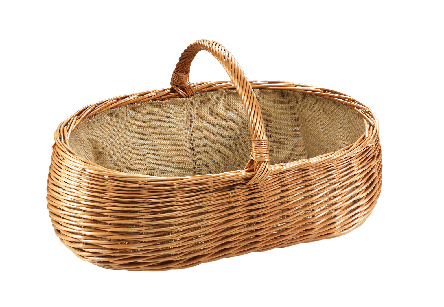 Ovaler Kaminholzkorb aus gekochter und geschälter Weide in Handarbeit geflochten, ausgeschlagen mit Jutefutter für den Schutz Ihrer Wohnung vor Holzrückständen, zur Aufbewahrung von Kaminholz. Länge 60cm x Breite 35cm x Höhe 20cm