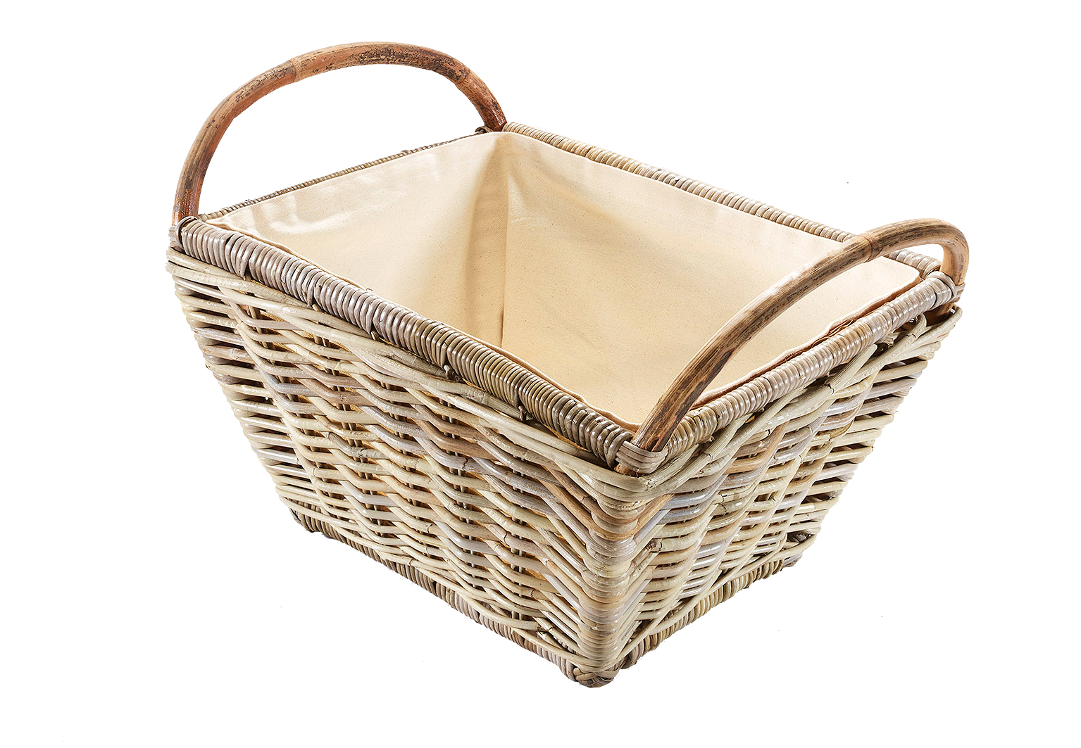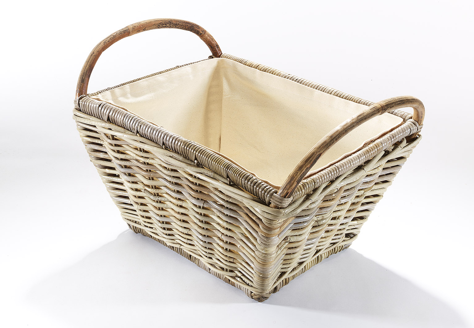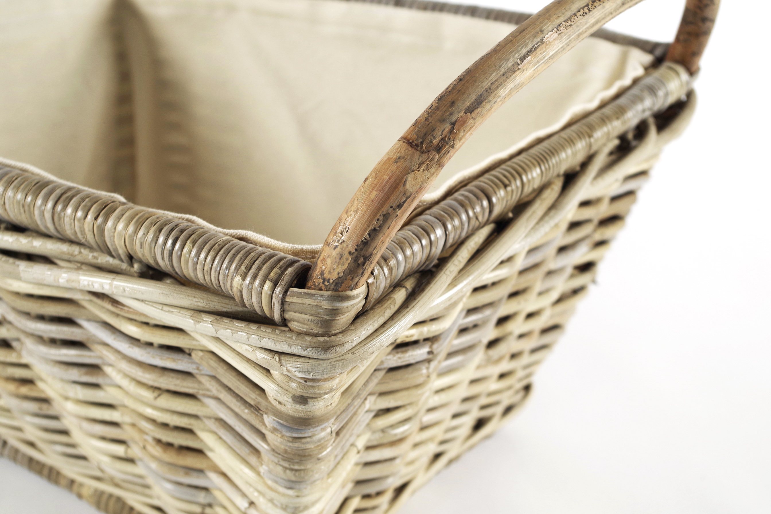 Vielzweckkorb aus grauem Rattan, eckig mit Leinenfutter ausgestattet
